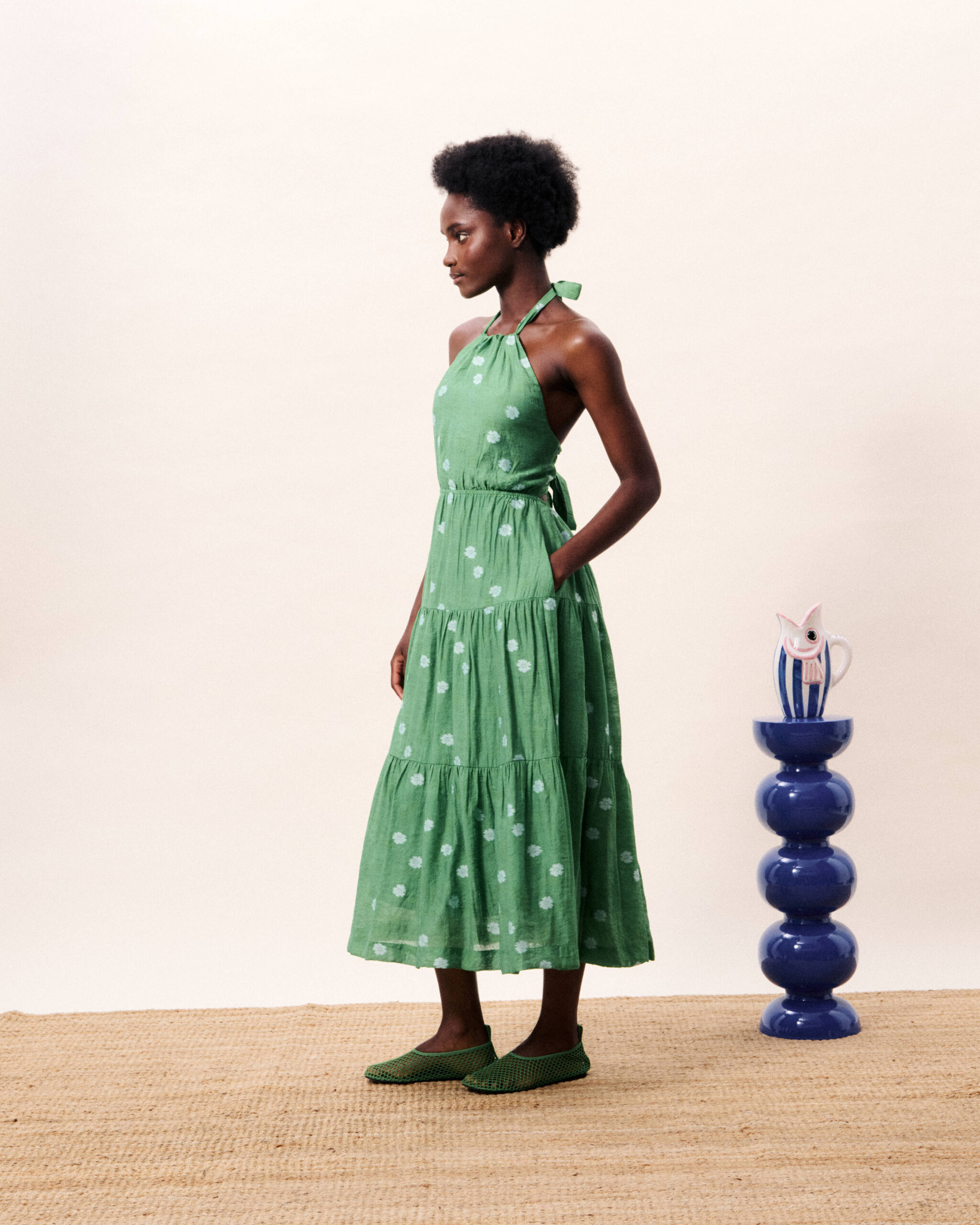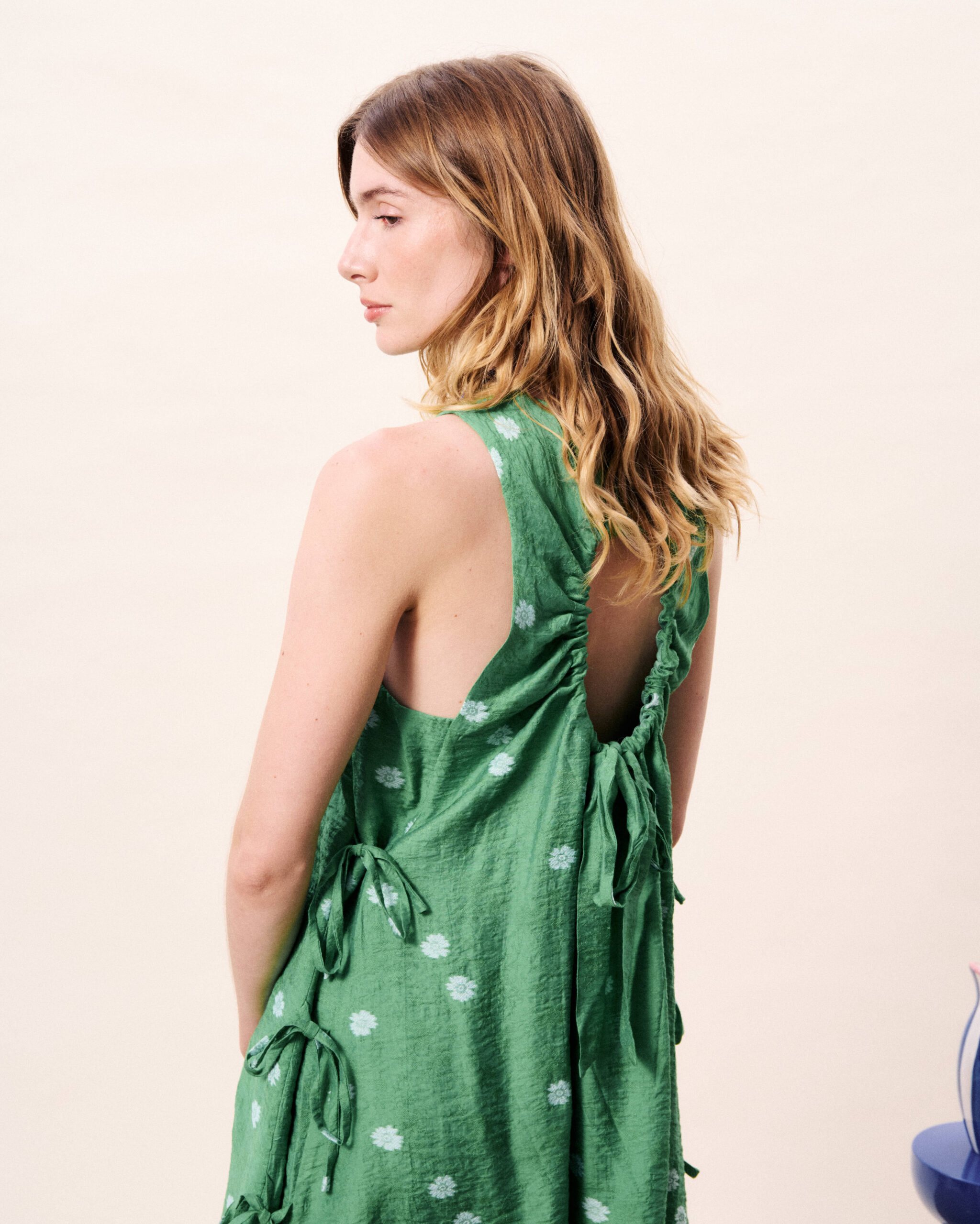 Πράσινο Κοντό Φόρεμα με Λουλούδια και Ανοιχτή Πλάτη – FRNCH- LUCY PARIS