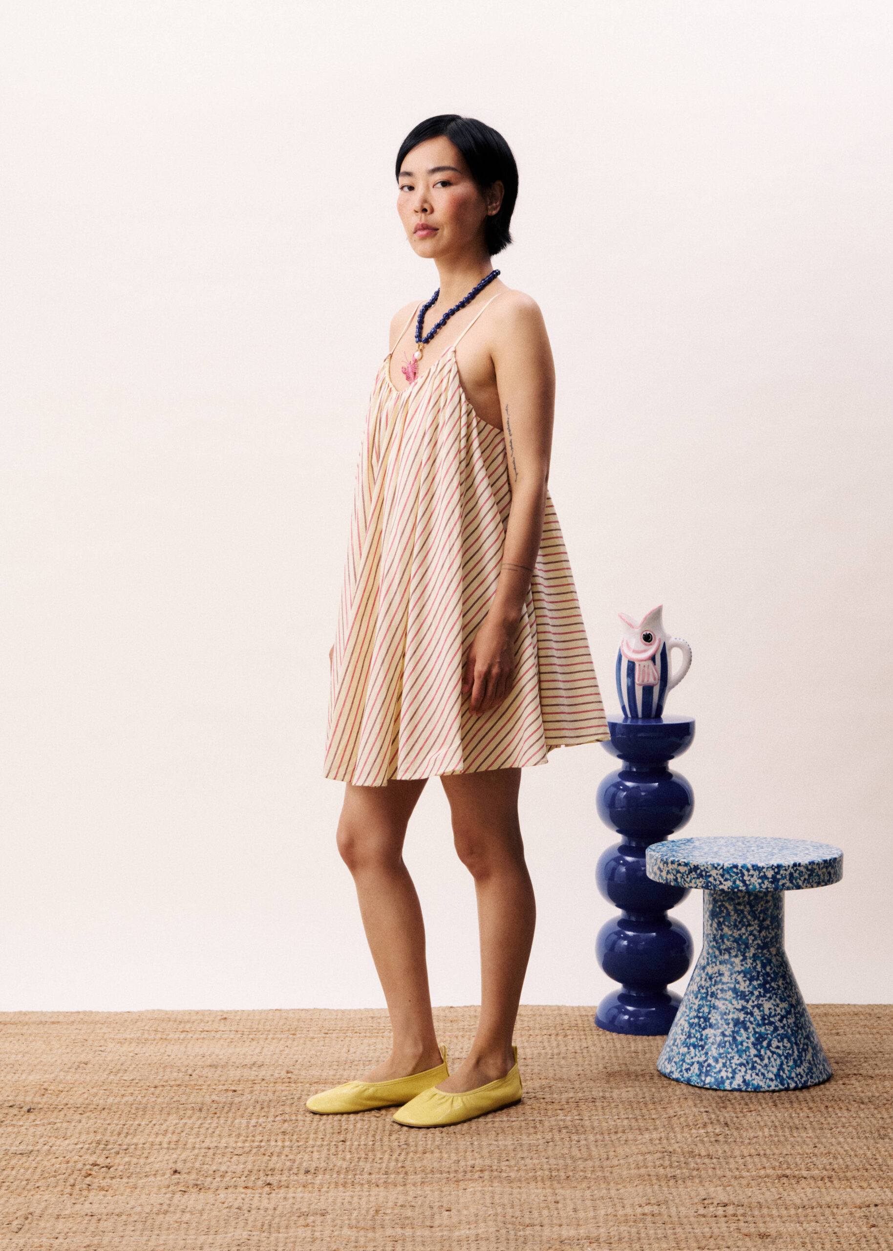 Γυναικείο Mini Ριγέ Κοντομάνικο Φόρεμα – FRNCH- LUCY PARIS