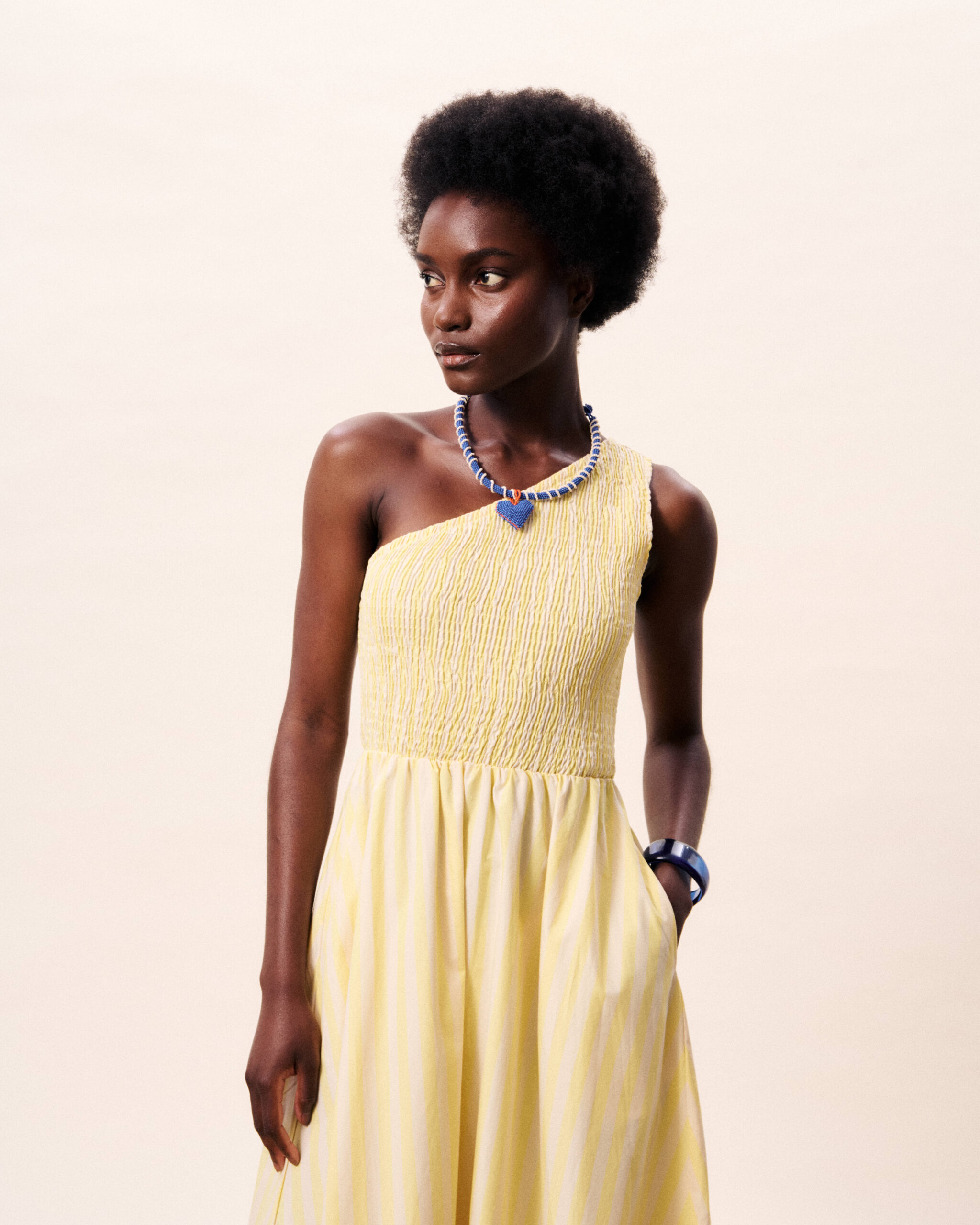 Γυναικείο Maxi Κίτρινο Φόρεμα Έναν Ώμο – FRNCH- LUCY PARIS