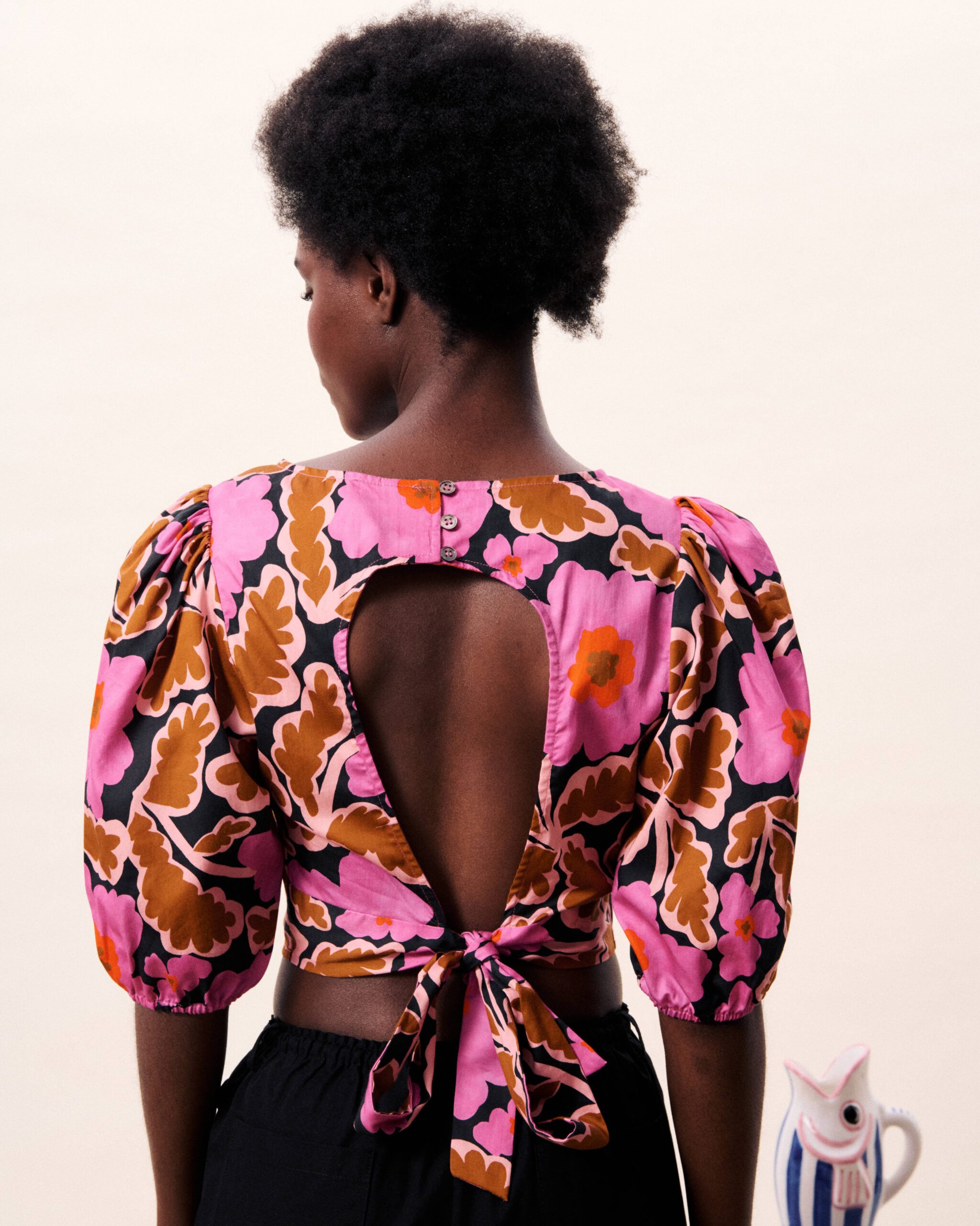 Γυναικεία Κοντή Μπλούζα με Ανοιχτή Πλάτη και Λουλούδια – FRNCH- LUCY PARIS