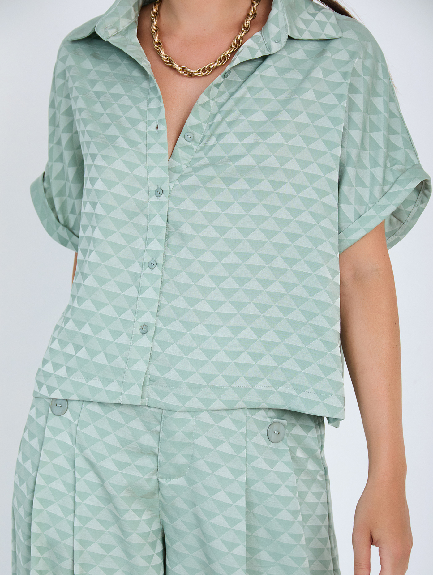 Γυναικείο Κοντομάνικο Πουκάμισο με Γεωμετρικά Σχέδια – SKATIE