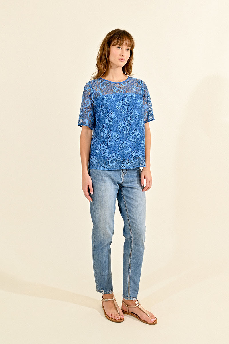 Μπλε Κοντομάνικη Μπλούζα με Διατρητά Σχέδια – MOLLY BRACKEN