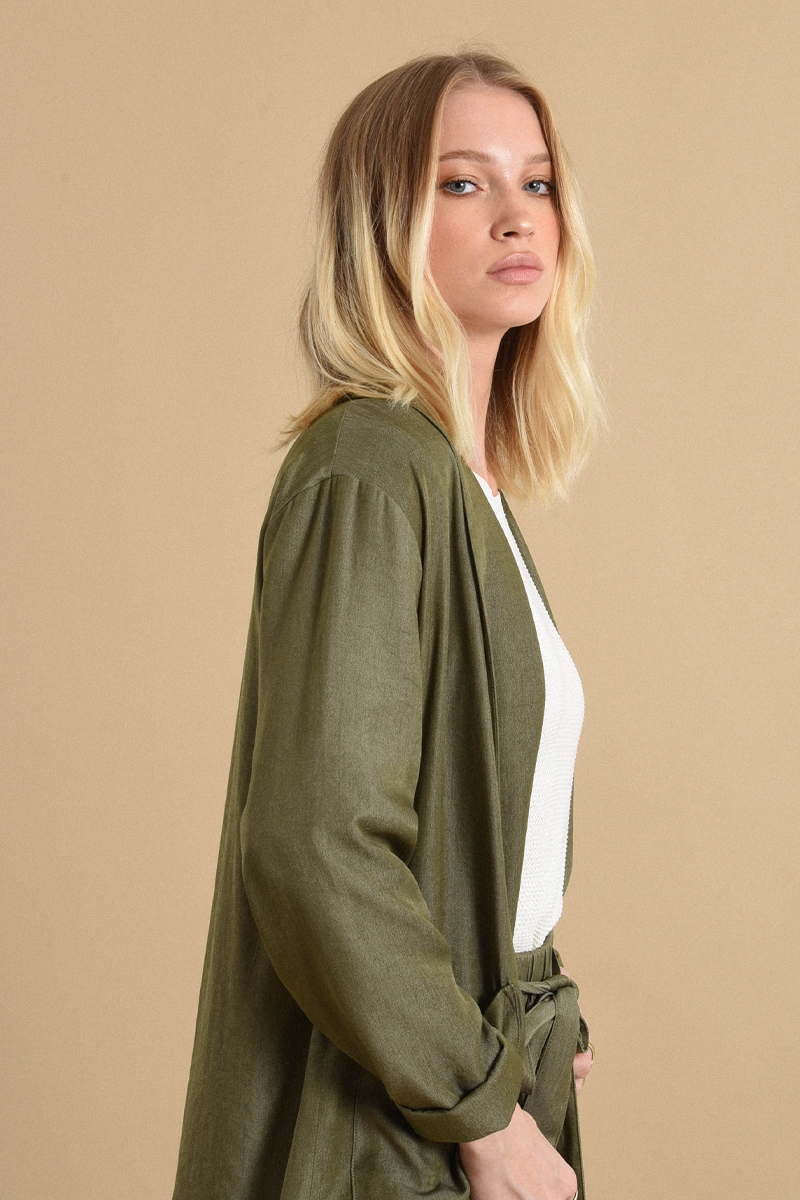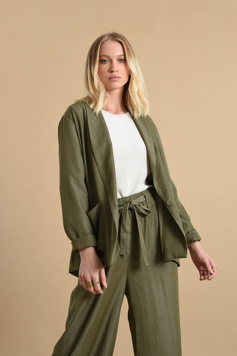Κομψό γυναικείο σακάκι σε πράσινη απόχρωση, ιδανικό για καθημερινές αλλά και πιο επίσημες εμφανίσεις. Άνετη εφαρμογή και διαχρονικό σχέδιο που συνδυάζεται εύκολα με παντελόνια, φούστες ή τζιν για ολοκληρωμένο και στυλάτο outfit.