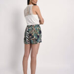 Άνετο σορτς με εντυπωσιακό σχέδιο από φύλλα, ιδανικό για καλοκαιρινές εμφανίσεις. Ευκολοφόρετο και δροσερό, προσφέρει άνεση και στυλ όλη την ημέρα. Συνδυάζεται εύκολα με απλά tops για ένα ολοκληρωμένο look.