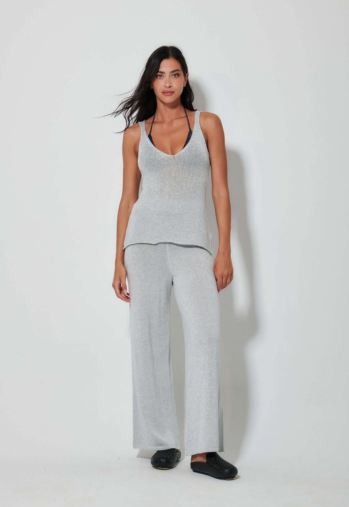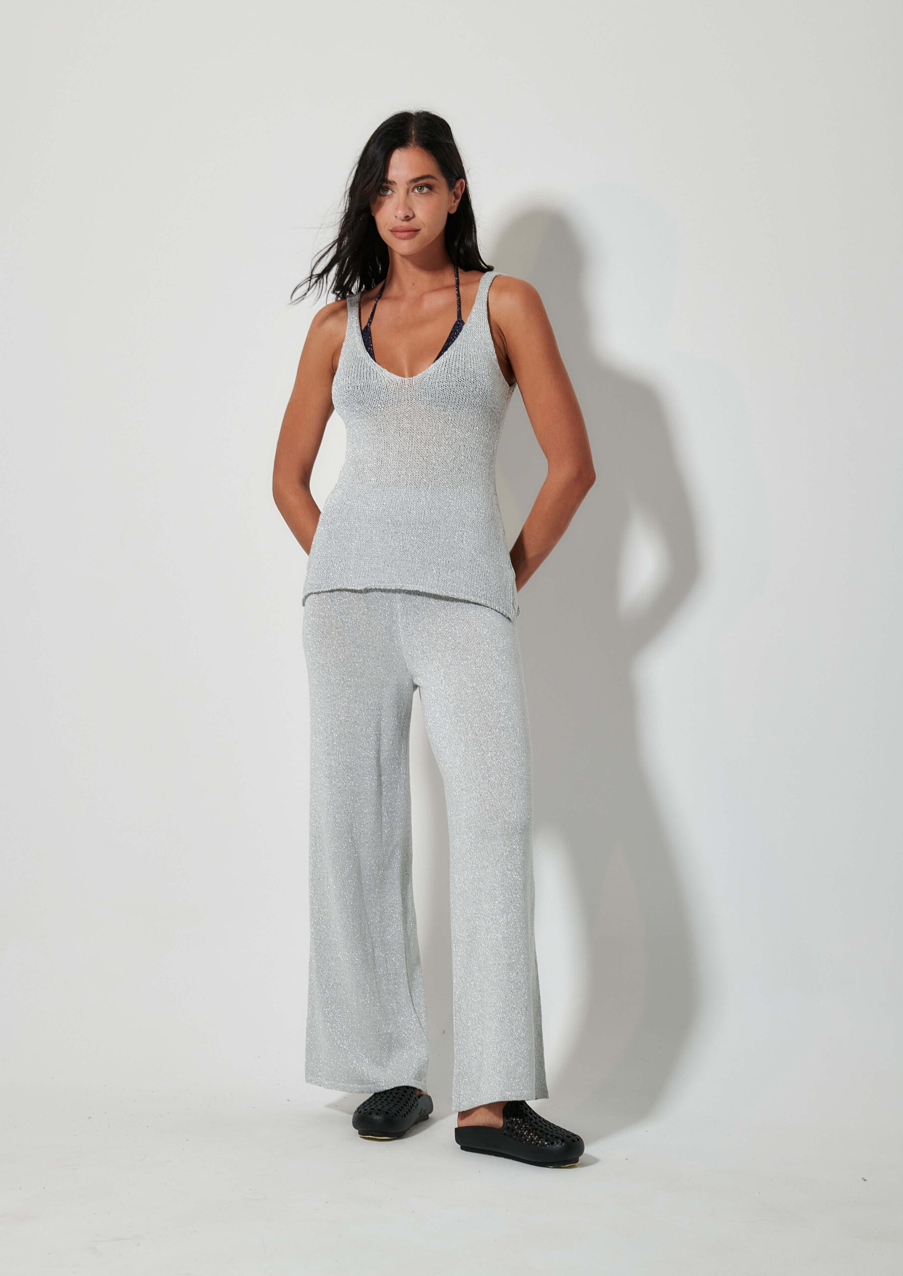 Ασημί Πλεκτό Ψηλόμεσο Παντελόνι – AMOR RIVIERA