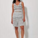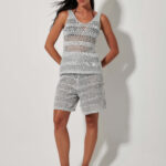 Γυναικείο ασημί ριγέ πλεκτό ψηλόμεσο σορτς με κομψά σχέδια που προσδίδουν διακριτικά λαμπερό χαρακτήρα στο ντύσιμο. Ιδανικό για casual ή βραδινές εμφανίσεις, φοριέται άνετα με τοπ, μπλούζες ή πουκάμισα, δημιουργώντας ένα ολοκληρωμένο και προσεγμένο σύνολο.