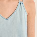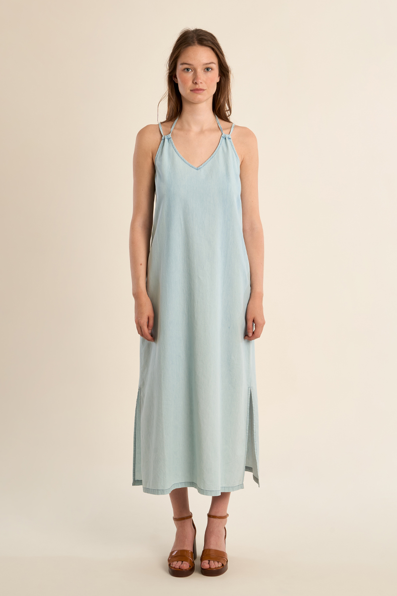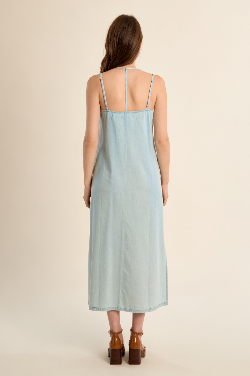 Το γαλάζιο φόρεμα με διπλή τιράντα είναι κομψό και άνετο, ιδανικό για casual ή καλοκαιρινές εμφανίσεις. Οι διπλές τιράντες προσθέτουν στυλ και μοναδικότητα, ενώ το ελαφρύ ύφασμα χαρίζει άνεση καθ’ όλη τη διάρκεια της ημέρας. Το φωτεινό γαλάζιο χρώμα προσδίδει φρεσκάδα και θηλυκότητα, καθιστώντας το φόρεμα ιδανική επιλογή για κάθε περίσταση.