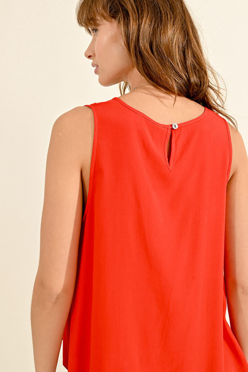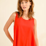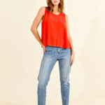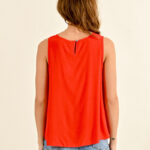 Πορτοκαλί αμάνικη γυναικεία μπλούζα, άνετη και δροσερή για καθημερινές εμφανίσεις. Προσφέρει μοντέρνο και παιχνιδιάρικο στυλ, ιδανικό για casual ή πιο ιδιαίτερα looks. Συνδυάζεται εύκολα με σορτς, φούστες ή παντελόνια.