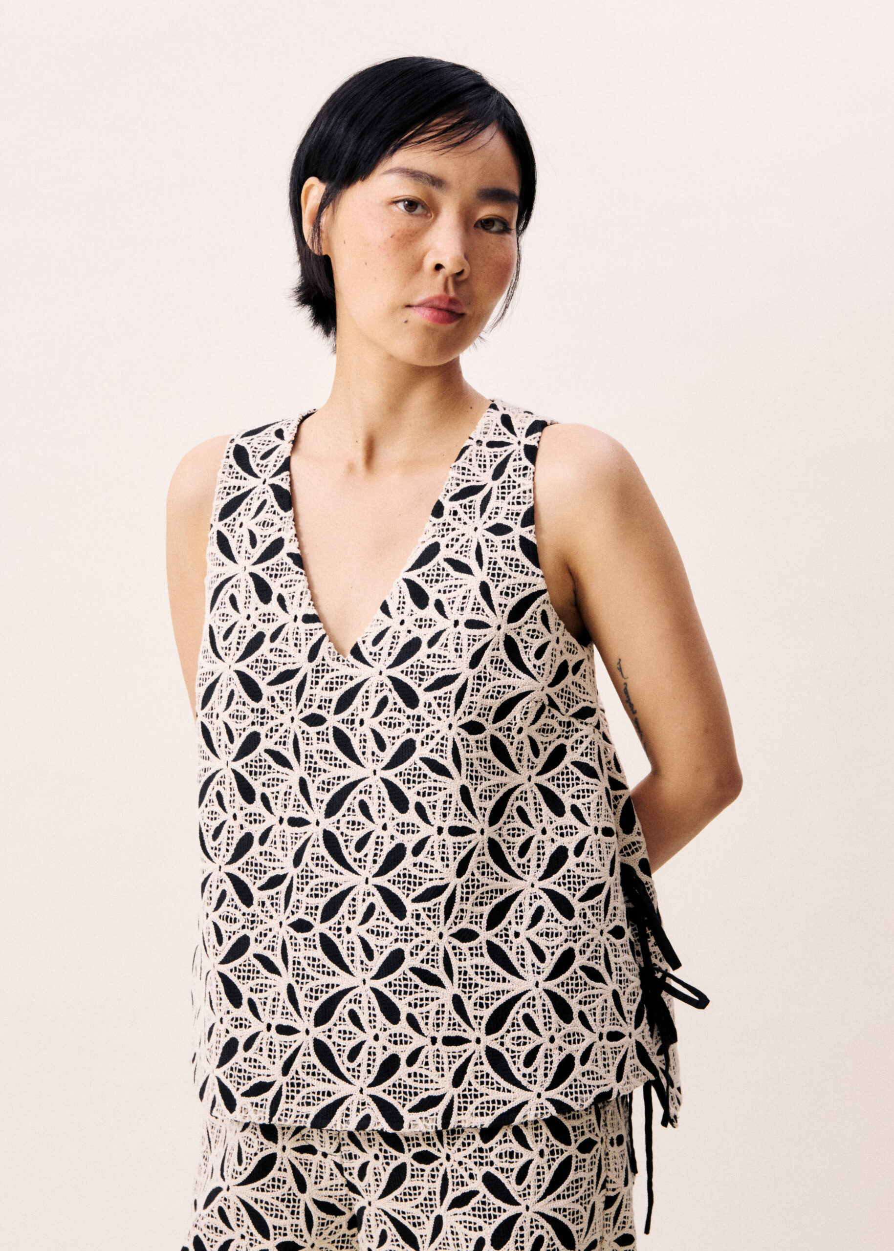 Γυναικεία ασπρόμαυρη μπλούζα διακοσμημένη με λουλούδια που χαρίζει κομψό και μοντέρνο χαρακτήρα στο ντύσιμο. Ιδανική για casual ή πιο προσεγμένες εμφανίσεις, φοριέται άνετα με παντελόνια, φούστες ή τζιν, δημιουργώντας ένα ολοκληρωμένο και στιλάτο σύνολο.