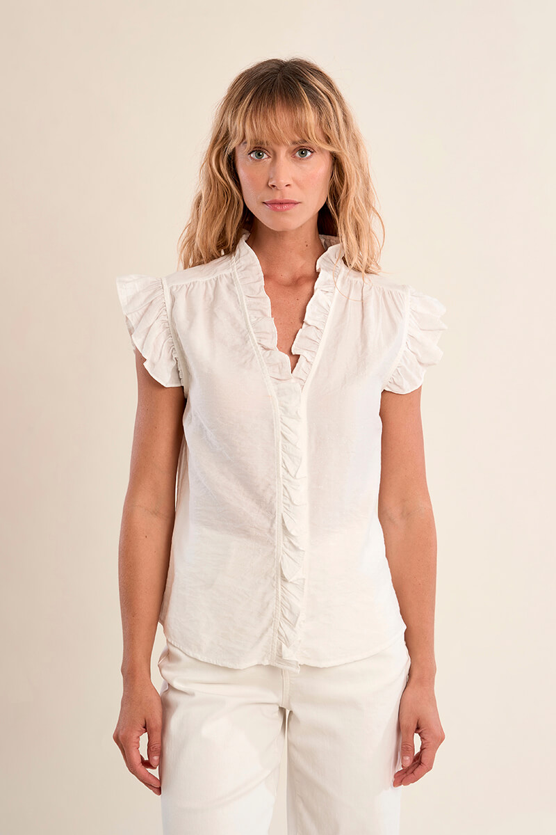 Γγυναικεία λευκή μπλούζα, με διαχρονικό και κομψό χαρακτήρα που αναβαθμίζει κάθε ντύσιμο. Ιδανική για layering και για εμφανίσεις που ξεχωρίζουν, φοριέται άνετα με τζιν, φούστες ή παντελόνια. Συνδυάζεται εύκολα με αξεσουάρ και άλλα βασικά κομμάτια για ένα ολοκληρωμένο και chic σύνολο.