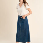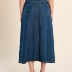 Γυναικεία μακριά τζιν φούστα που προσδίδει casual και μοντέρνο χαρακτήρα στο ντύσιμο. Ιδανική για καθημερινές ή πιο χαλαρές εμφανίσεις, φοριέται άνετα με μπλούζες, πουκάμισα ή τοπ, δημιουργώντας ένα ολοκληρωμένο και στιλάτο σύνολο.