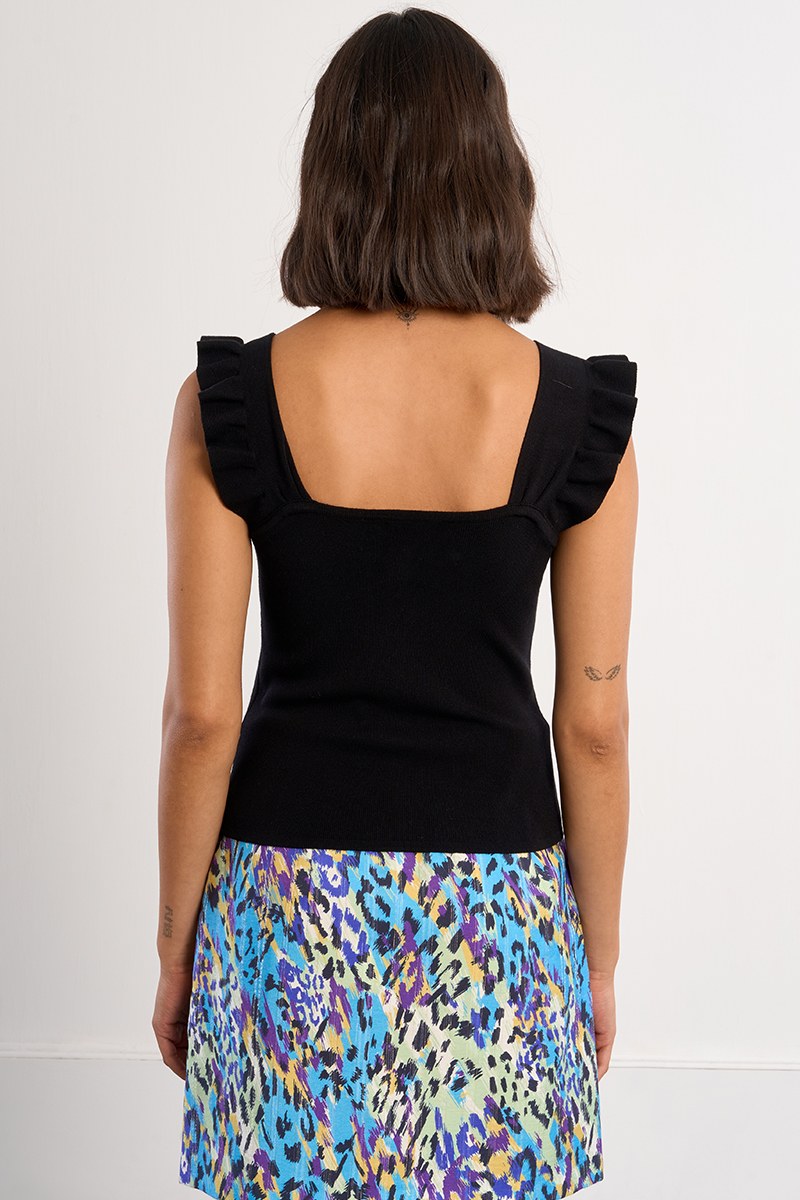 Γυναικεία μαύρη μπλούζα που προσδίδει κομψότητα και διαχρονικό χαρακτήρα στο καθημερινό ντύσιμο. Ιδανική για casual ή πιο επίσημες εμφανίσεις, φοριέται άνετα με τζιν, παντελόνια ή φούστες, δημιουργώντας ένα ολοκληρωμένο και στιλάτο σύνολο.