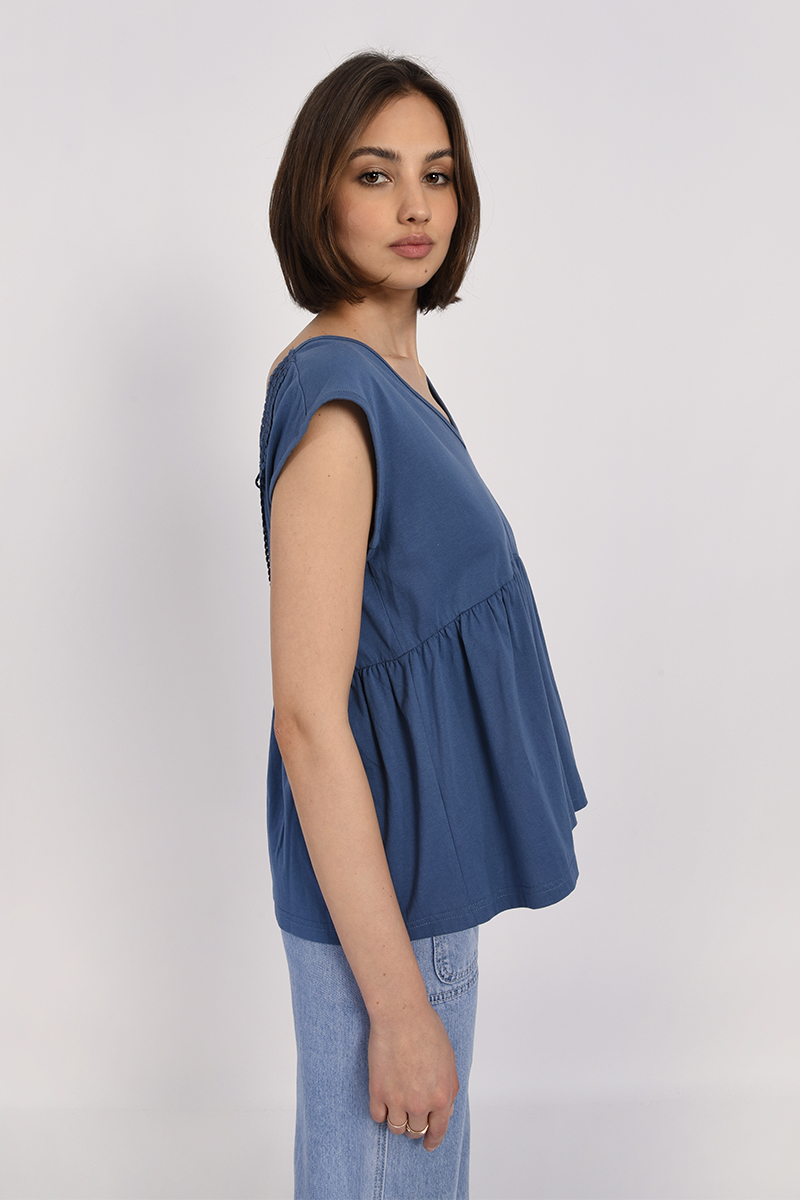 Κομψή γυναικεία μπλούζα σε μπλε απόχρωση, ιδανική για καθημερινές εμφανίσεις με μοντέρνο και διαχρονικό χαρακτήρα. Άνετη εφαρμογή και ευκολοφόρετο σχέδιο που συνδυάζεται εύκολα με τζιν, φούστες ή παντελόνια για ολοκληρωμένο outfit.