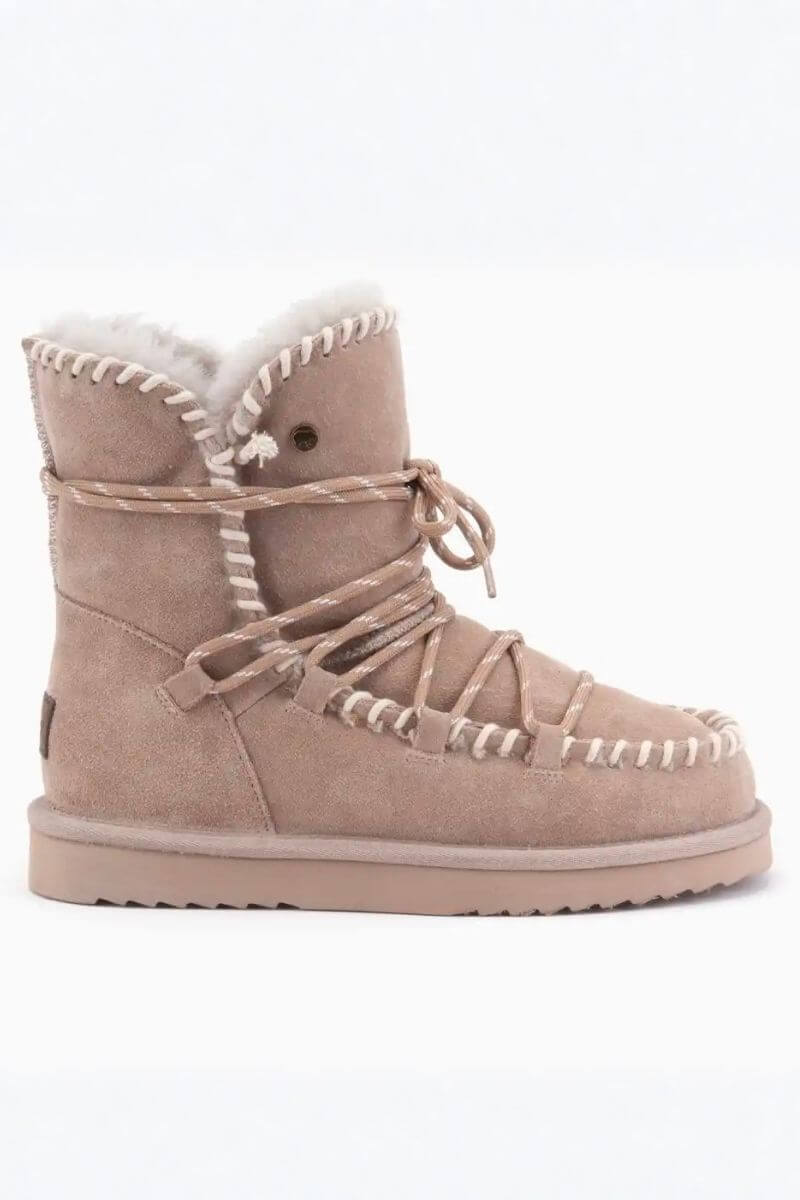 Γυναικεία μποτάκια με 100% αυστραλιανό μαλλί Merino, που προσφέρει φυσική ζεστασιά και άνεση. Διαθέτουν κορδόνια για σταθερή εφαρμογή και εύκολη προσαρμογή στο πόδι. Ιδανική επιλογή για τις κρύες ημέρες, συνδυάζοντας ποιότητα και διαχρονικό στυλ.
