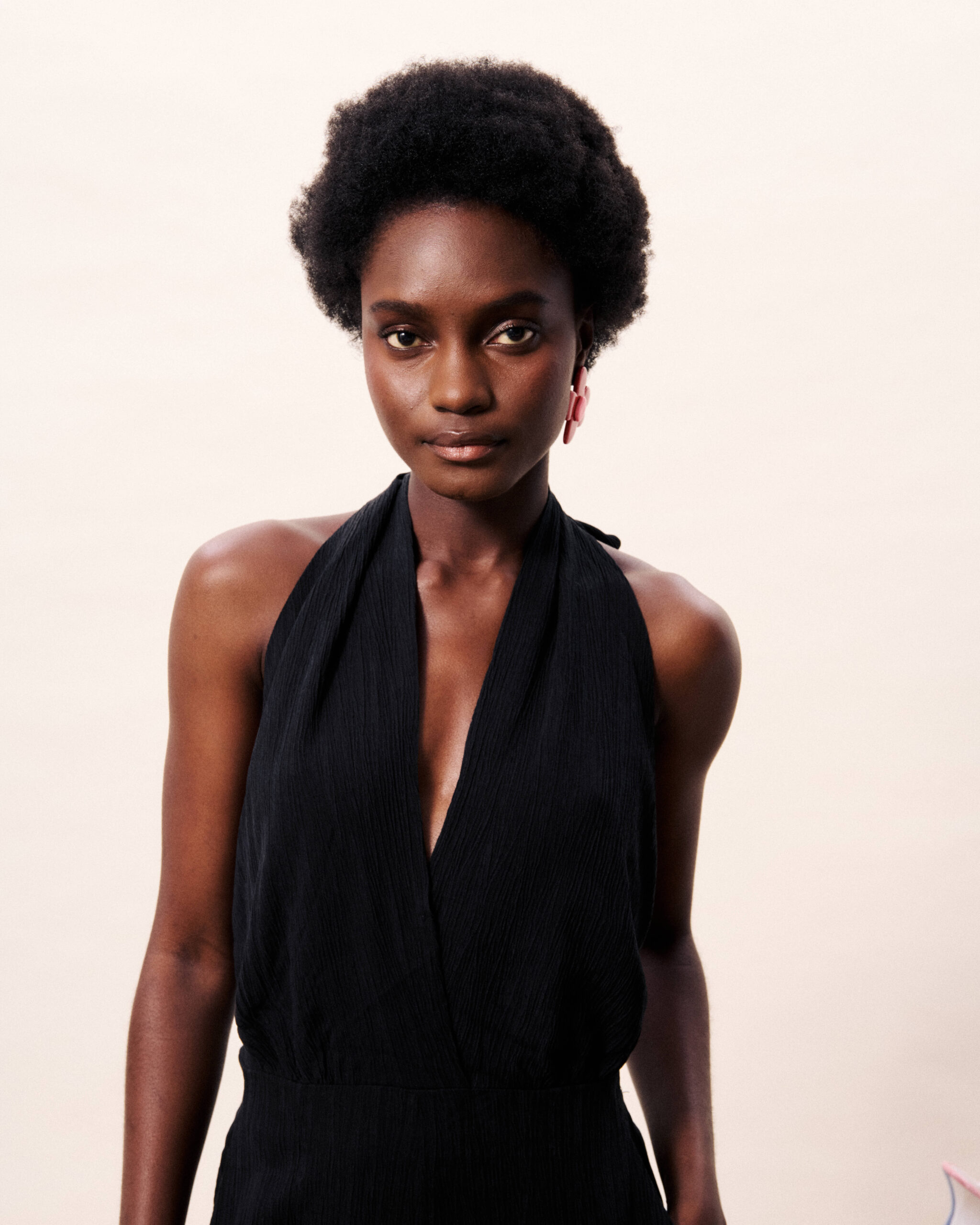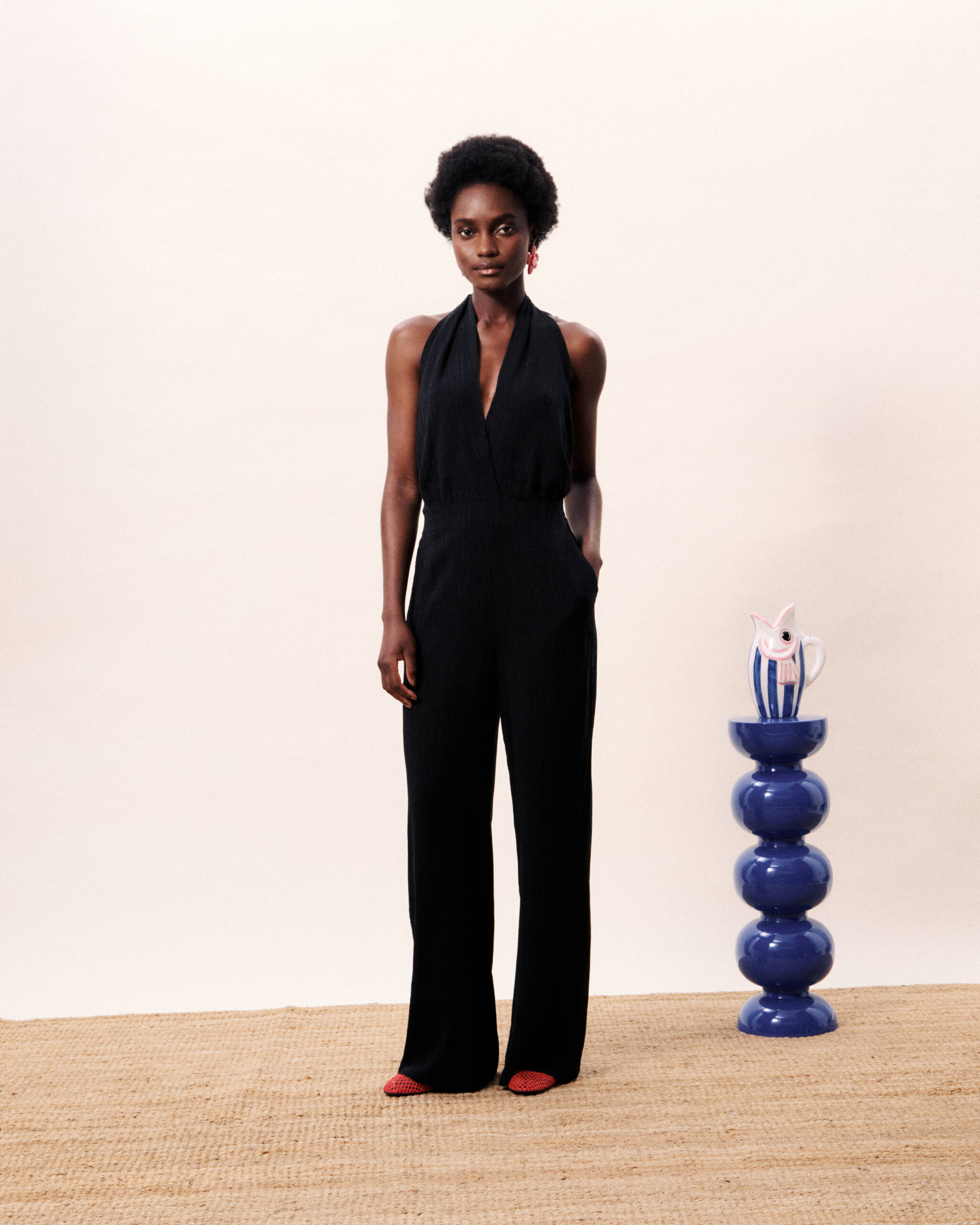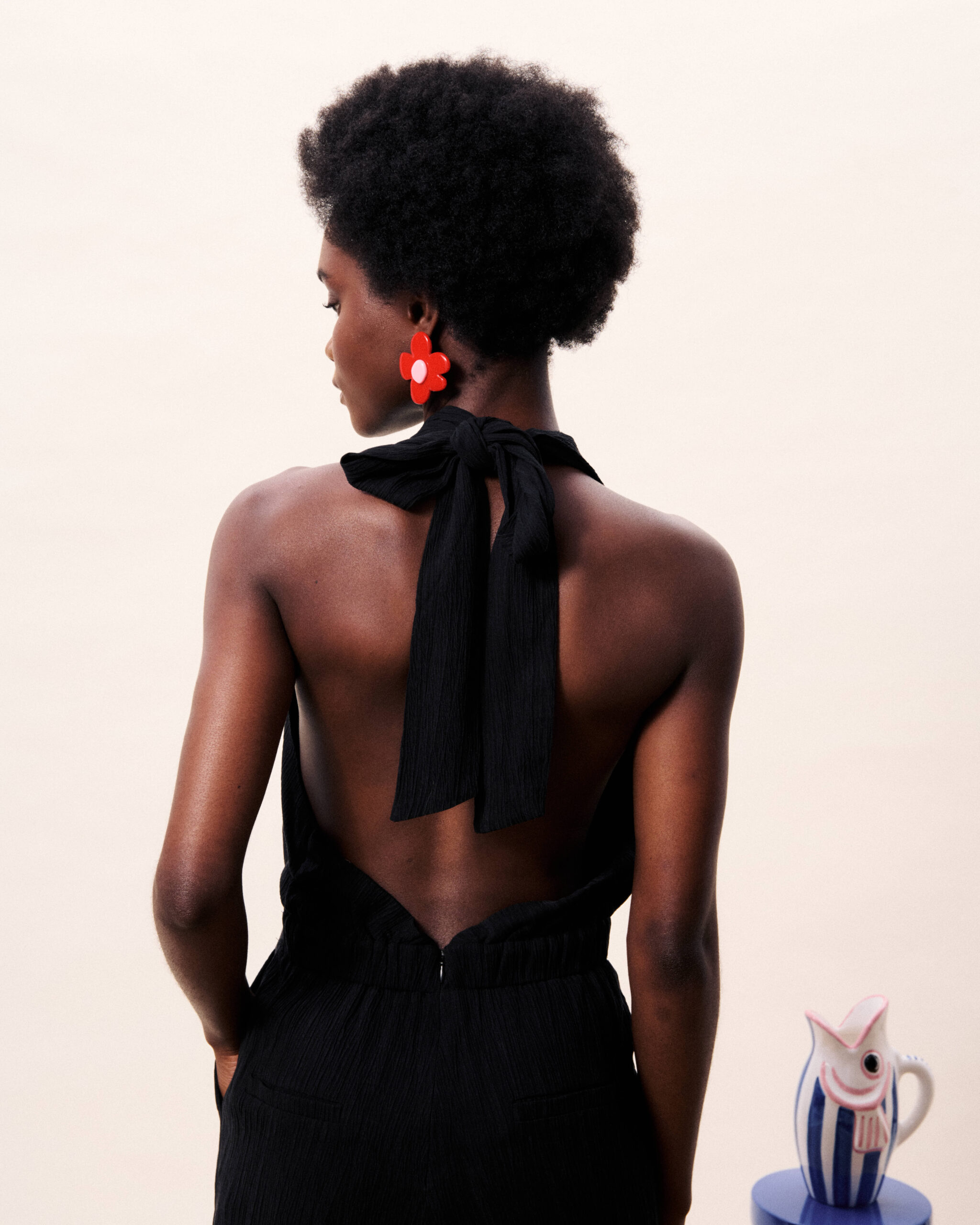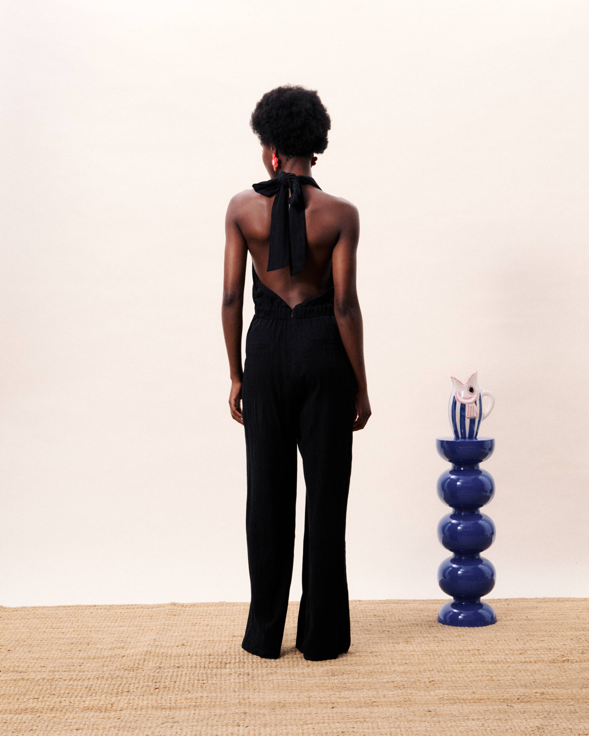 Γυναικεία ολόσωμη φόρμα εξώπλατη που χαρίζει μοντέρνο και κομψό χαρακτήρα στο ντύσιμο. Ιδανική για casual ή πιο επίσημες εμφανίσεις, φοριέται άνετα μόνη της ή με διακριτικά αξεσουάρ, δημιουργώντας ένα ολοκληρωμένο και στιλάτο σύνολο.