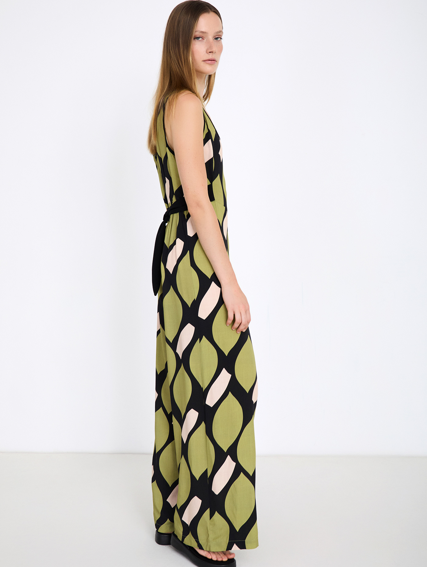 Γυναικεία ολόσωμη φόρμα με ιδιαίτερα σχέδια που χαρίζει μοντέρνο και εντυπωσιακό χαρακτήρα στο ντύσιμο. Ιδανική για casual, βραδινές ή πιο ιδιαίτερες εμφανίσεις, φοριέται άνετα μόνη της ή με διακριτικά αξεσουάρ, δημιουργώντας ένα ολοκληρωμένο και στιλάτο σύνολο.