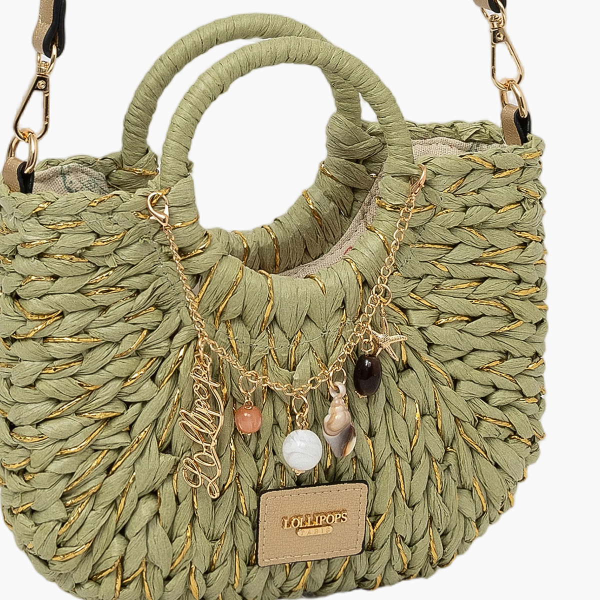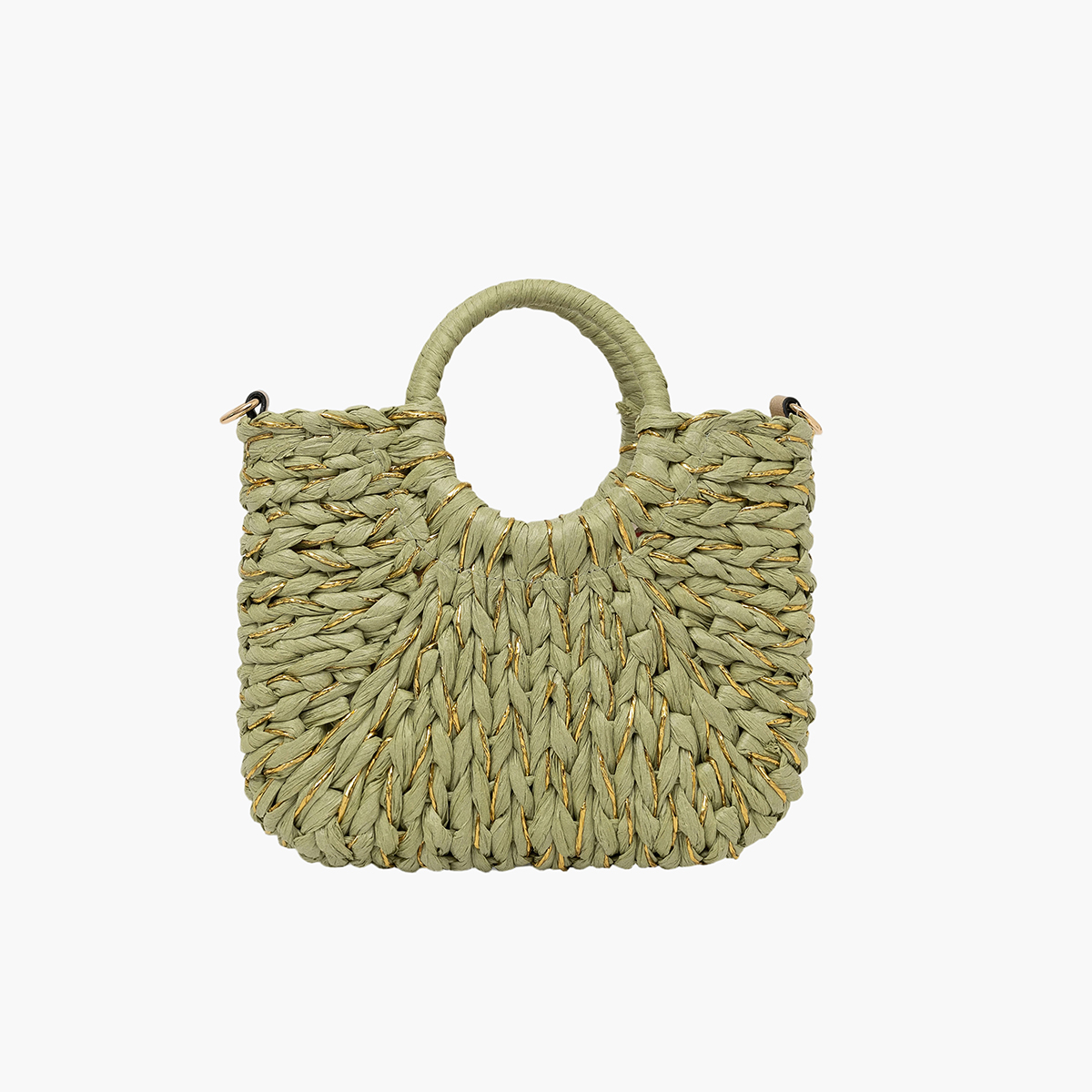 Γυναικεία τσάντα χειρός με ιδιαίτερη πλεκτή υφή και εντυπωσιακό σχεδιασμό. Διαθέτει στρογγυλά χερούλια για άνετο κράτημα, καθώς και αποσπώμενο λουρί ώστε να φορεθεί και στον ώμο ή χιαστί, προσφέροντας ευελιξία στη χρήση.
