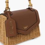 Κομψή γυναικεία τσάντα χειρός που συνδυάζει την ψάθα με εντυπωσιακό τύπου bamboo χερούλι για μοναδικό καλοκαιρινό στυλ. Διαθέτει αποσπώμενο λουρί ώμου, προσφέροντας ευελιξία για χρήση στο χέρι ή χιαστί.