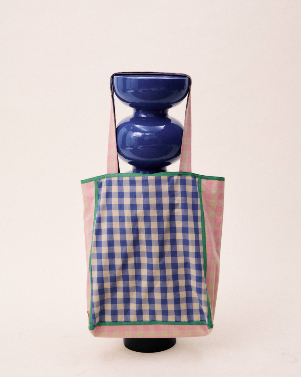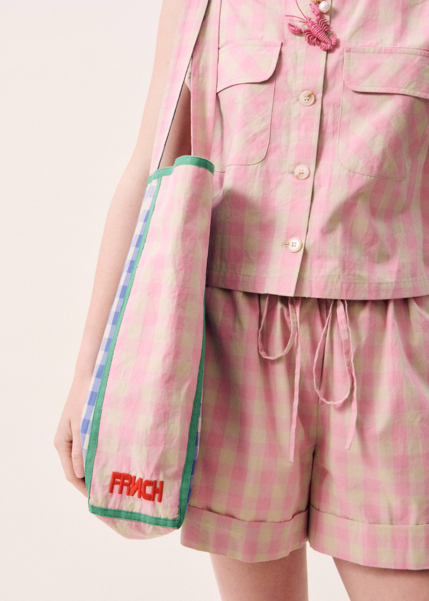 Γυναικεία Τσάντα Ώμου Ροζ Μπλε Καρό – FRNCH- LUCY PARIS