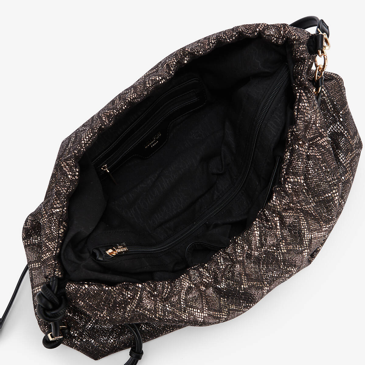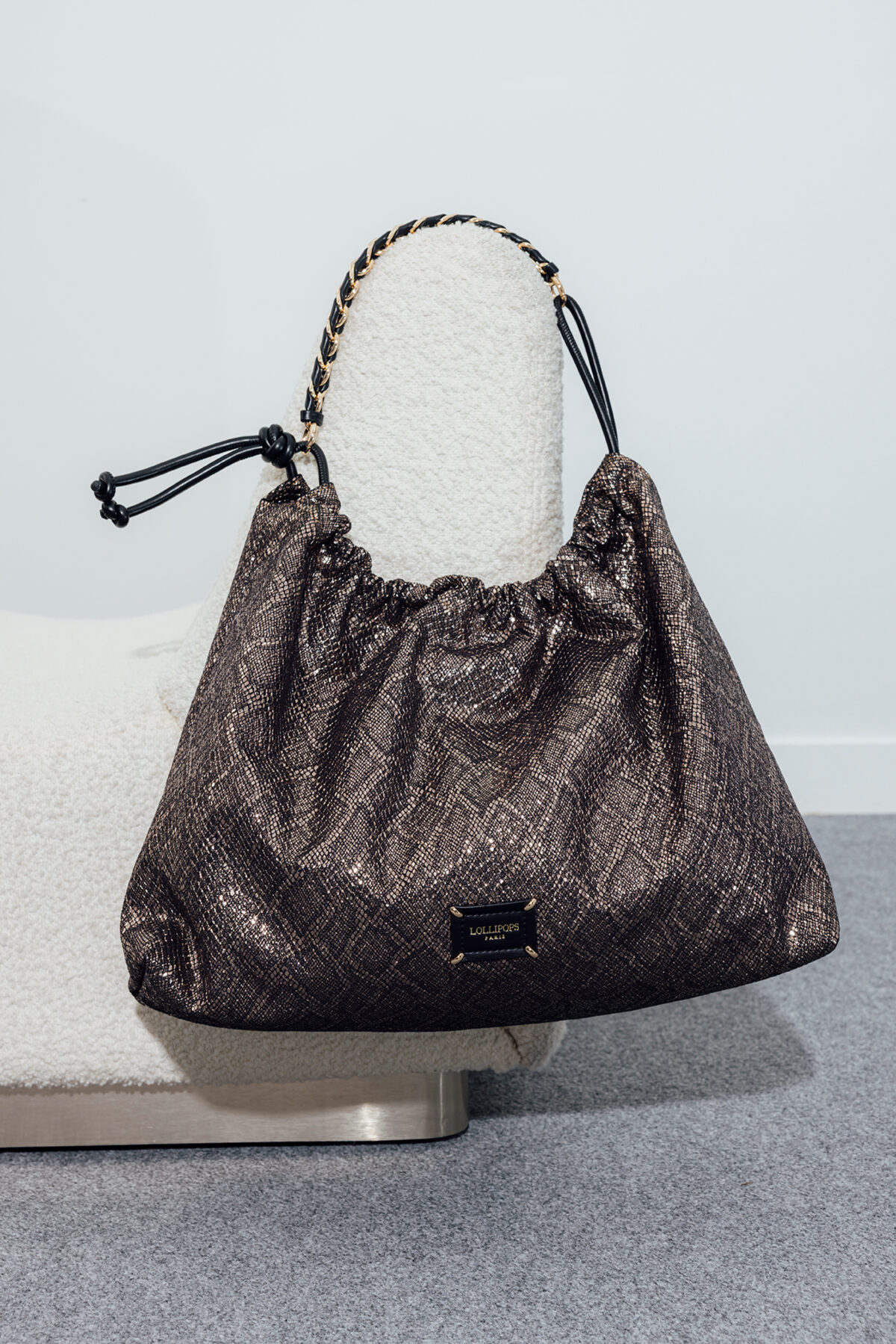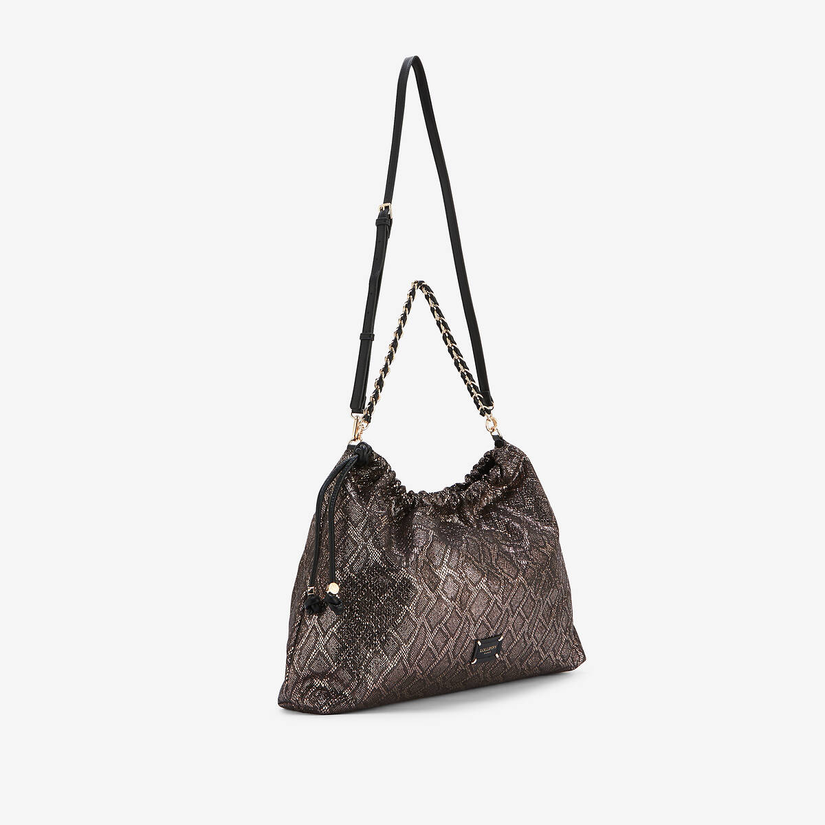 Γκρι τσάντα ώμου στραφταλίζε με animal print, κομψή και μοντέρνα, ιδανική για κάθε περίσταση.