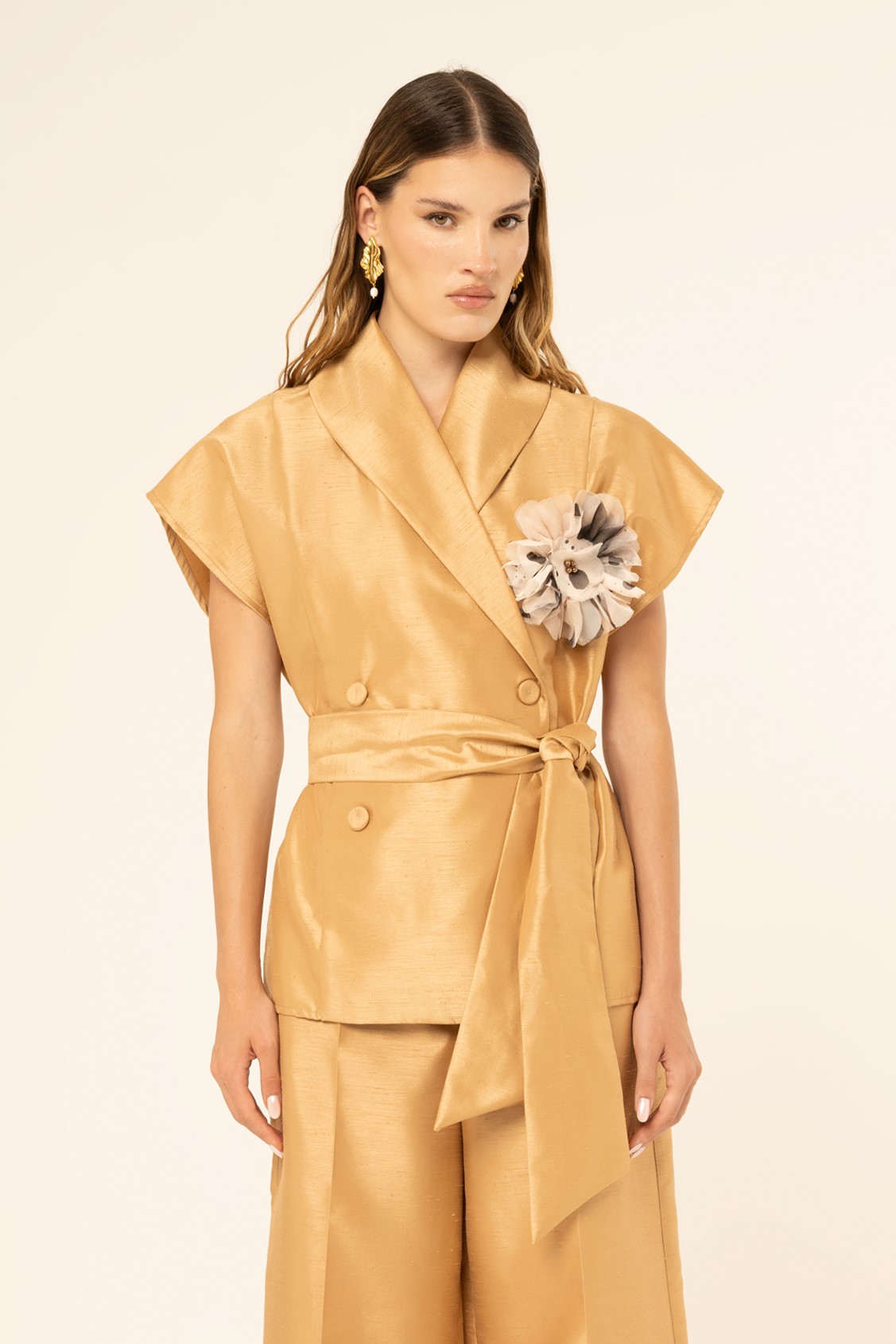 Αυτή η γυναικεία κοντομάνικη μπλούζα σε χρυσή απόχρωση ξεχωρίζει με την εντυπωσιακή της λάμψη, προσφέροντας θηλυκό και κομψό στυλ. Η άνετη εφαρμογή και η minimal γραμμή την καθιστούν ιδανική για βραδινές εμφανίσεις, ιδιαίτερες περιστάσεις ή για να δώσεις λάμψη σε καθημερινά outfits.