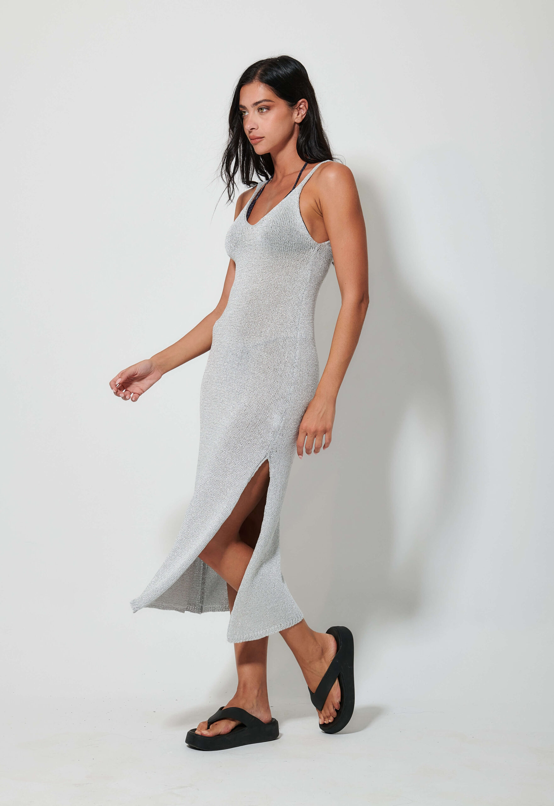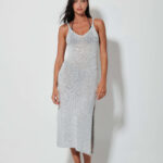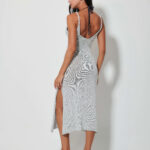 Γυναικείο ασημί πλεκτό φόρεμα με κομψό πλάγιο άνοιγμα που προσδίδει μοντέρνο και προσεγμένο χαρακτήρα στο ντύσιμο. Ιδανικό για βραδινές ή επίσημες εμφανίσεις, φοριέται άνετα μόνο του ή με διακριτικά αξεσουάρ, δημιουργώντας ένα ολοκληρωμένο και κομψό σύνολο.