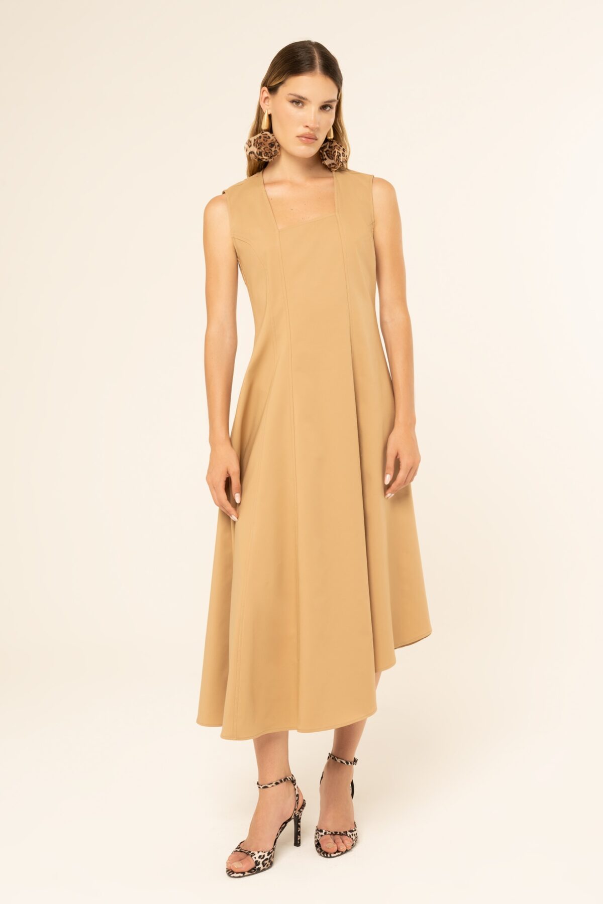 Γυναικείο ασύμμετρο φόρεμα σε μπεζ απόχρωση που χαρίζει κομψό και μοντέρνο χαρακτήρα στις εμφανίσεις. Το ιδιαίτερο ασύμμετρο σχέδιο το κάνει ξεχωριστό και ιδανικό για καθημερινές αλλά και πιο ιδιαίτερες εμφανίσεις, δημιουργώντας ένα στιλάτο και εντυπωσιακό σύνολο.