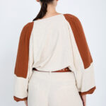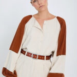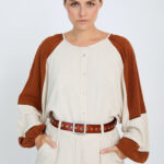 Γυναικείο δίχρωμο μακρυμάνικο πουκάμισο σε συνδυασμό μπεζ και κόκκινου που προσδίδει κομψό και μοντέρνο χαρακτήρα στο ντύσιμο. Ιδανικό για καθημερινές ή πιο προσεγμένες εμφανίσεις, συνδυάζεται εύκολα με παντελόνια ή φούστες, δημιουργώντας ένα ολοκληρωμένο και καλαίσθητο σύνολο.