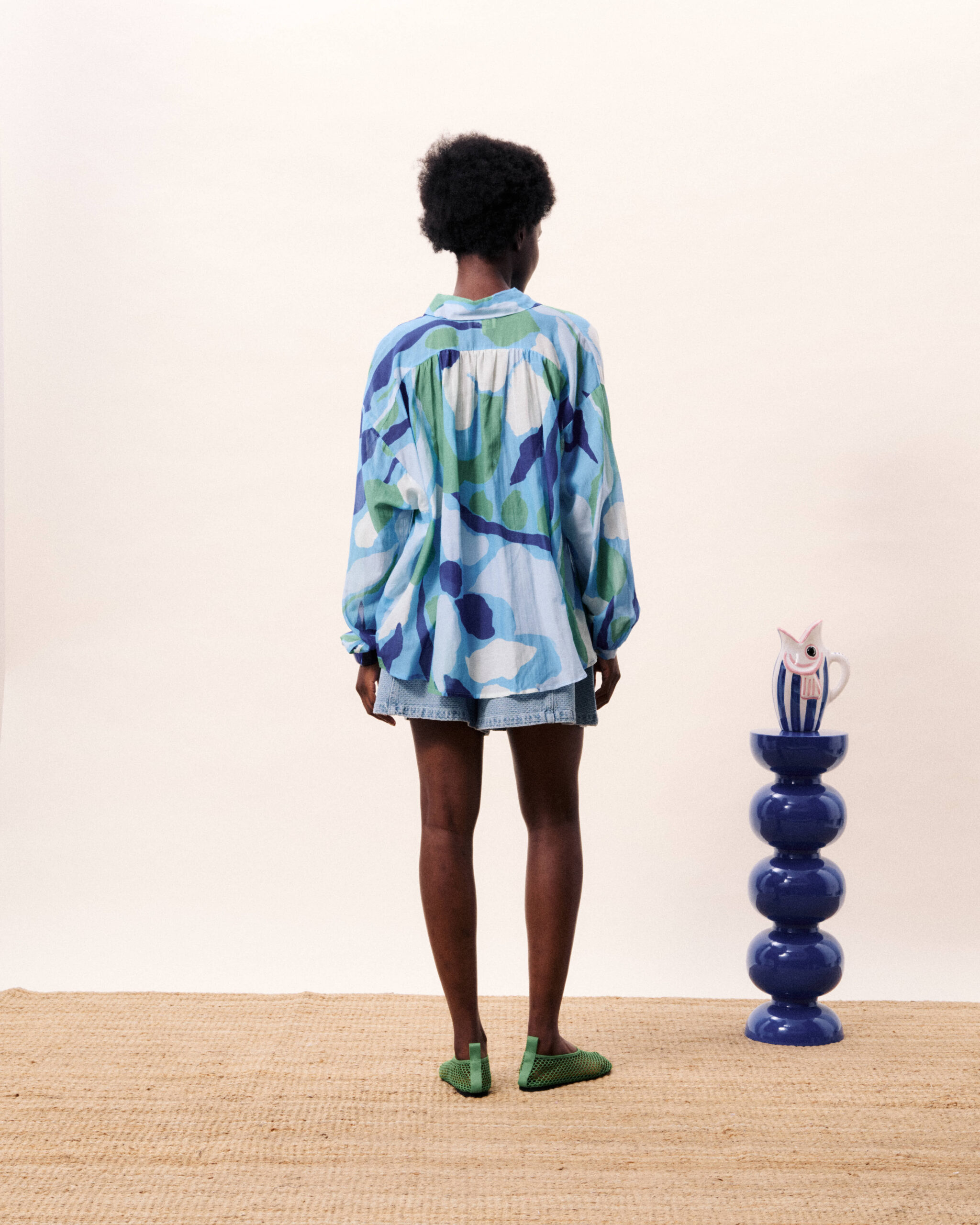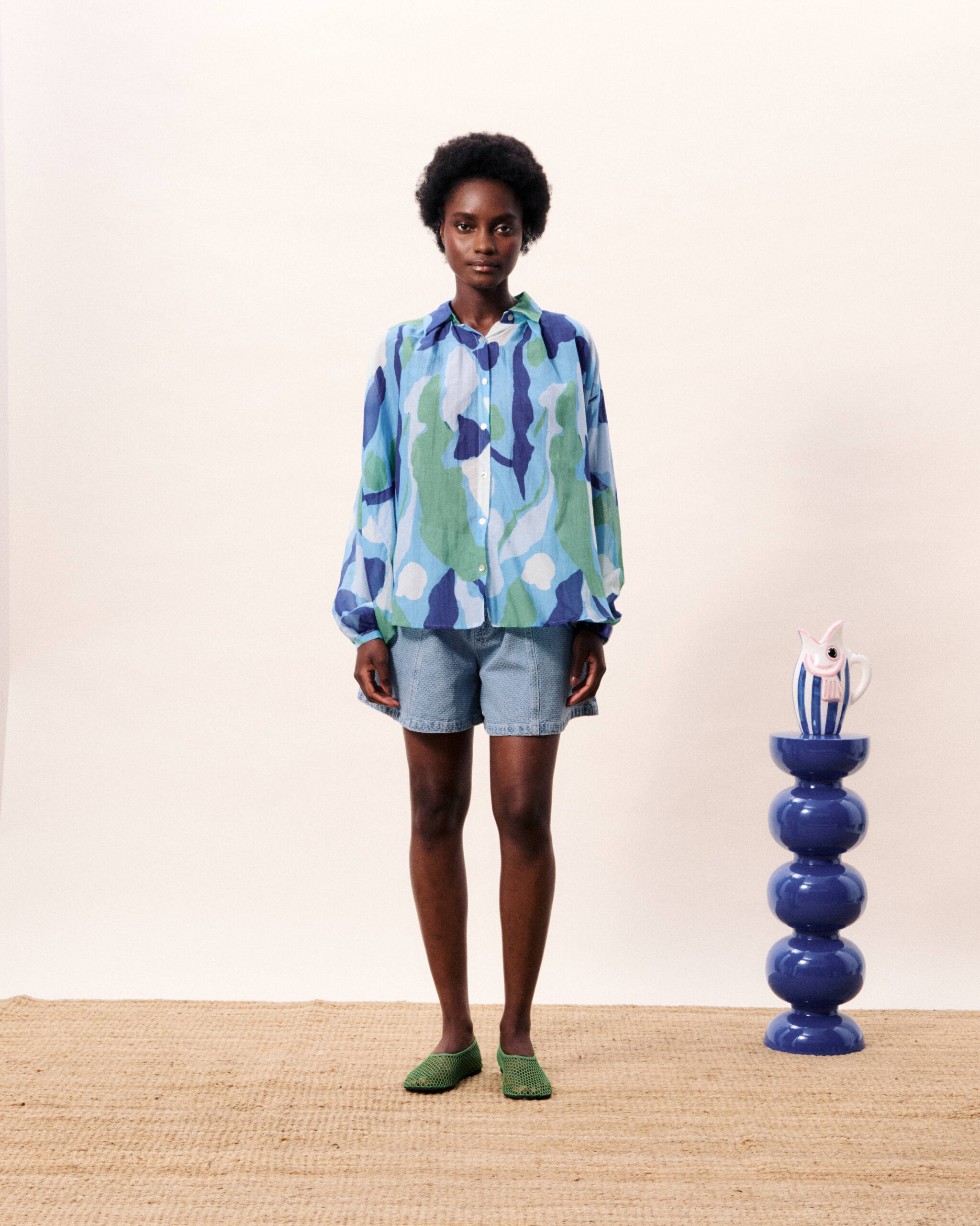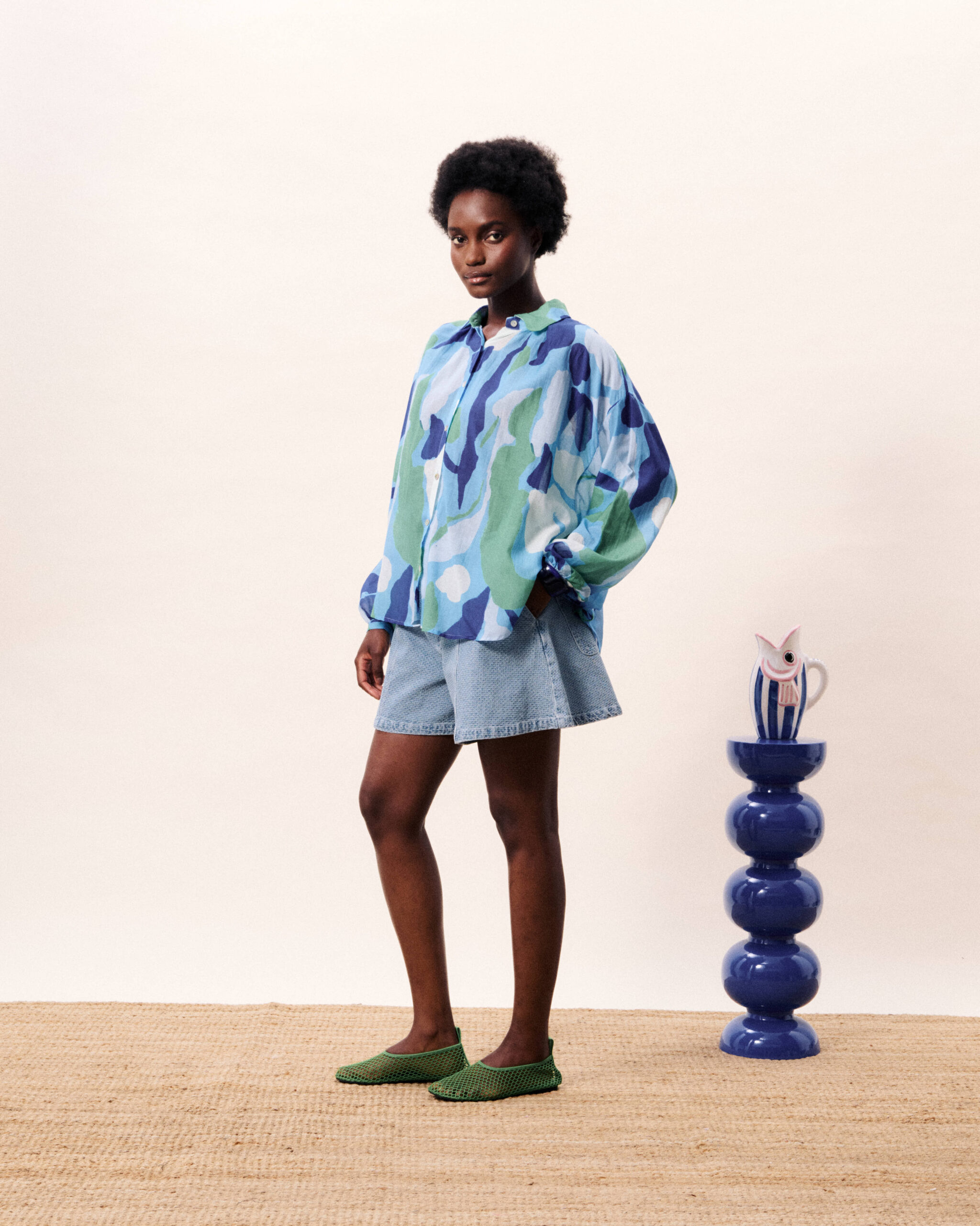 Γυναικείο εμπριμέ πουκάμισο που χαρίζει μοντέρνο και ζωηρό χαρακτήρα στο ντύσιμο. Ιδανικό για casual ή πιο προσεγμένες εμφανίσεις, φοριέται άνετα με παντελόνια, τζιν ή φούστες, δημιουργώντας ένα ολοκληρωμένο και στιλάτο σύνολο.
