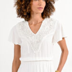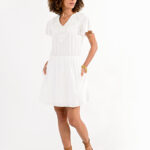 Γυναικείο Κοντομάνικο Λευκό Φόρεμα με Λεπτομέρεια στη Λαιμόκοψη – MOLLY BRACKEN