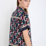 Γυναικείο κοντομάνικο πουκάμισο σε πολύχρωμο σχεδιασμό που χαρίζει ζωντανό και μοντέρνο χαρακτήρα στο ντύσιμο. Ιδανικό για καλοκαιρινές και καθημερινές εμφανίσεις, συνδυάζεται εύκολα με παντελόνια, φούστες ή σορτς, δημιουργώντας ένα ολοκληρωμένο και καλαίσθητο σύνολο.
