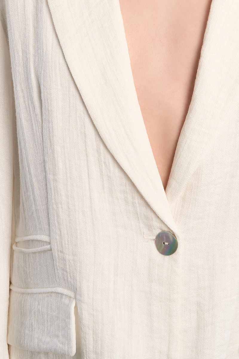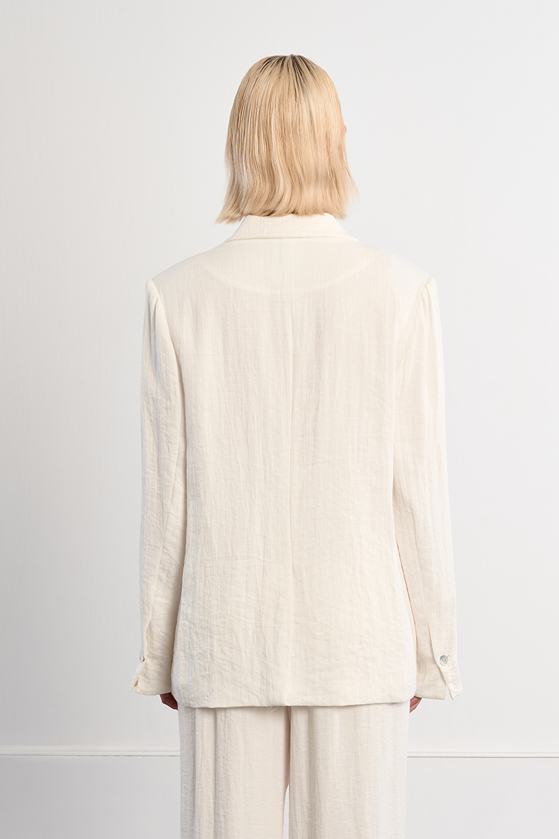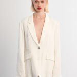 Γυναικείο λευκό σακάκι που χαρίζει κομψό και διαχρονικό χαρακτήρα στο ντύσιμο. Ιδανικό για καθημερινές ή πιο επίσημες εμφανίσεις, φοριέται άνετα πάνω από μπλούζες, πουκάμισα ή φορέματα, δημιουργώντας ένα ολοκληρωμένο και στιλάτο σύνολο.