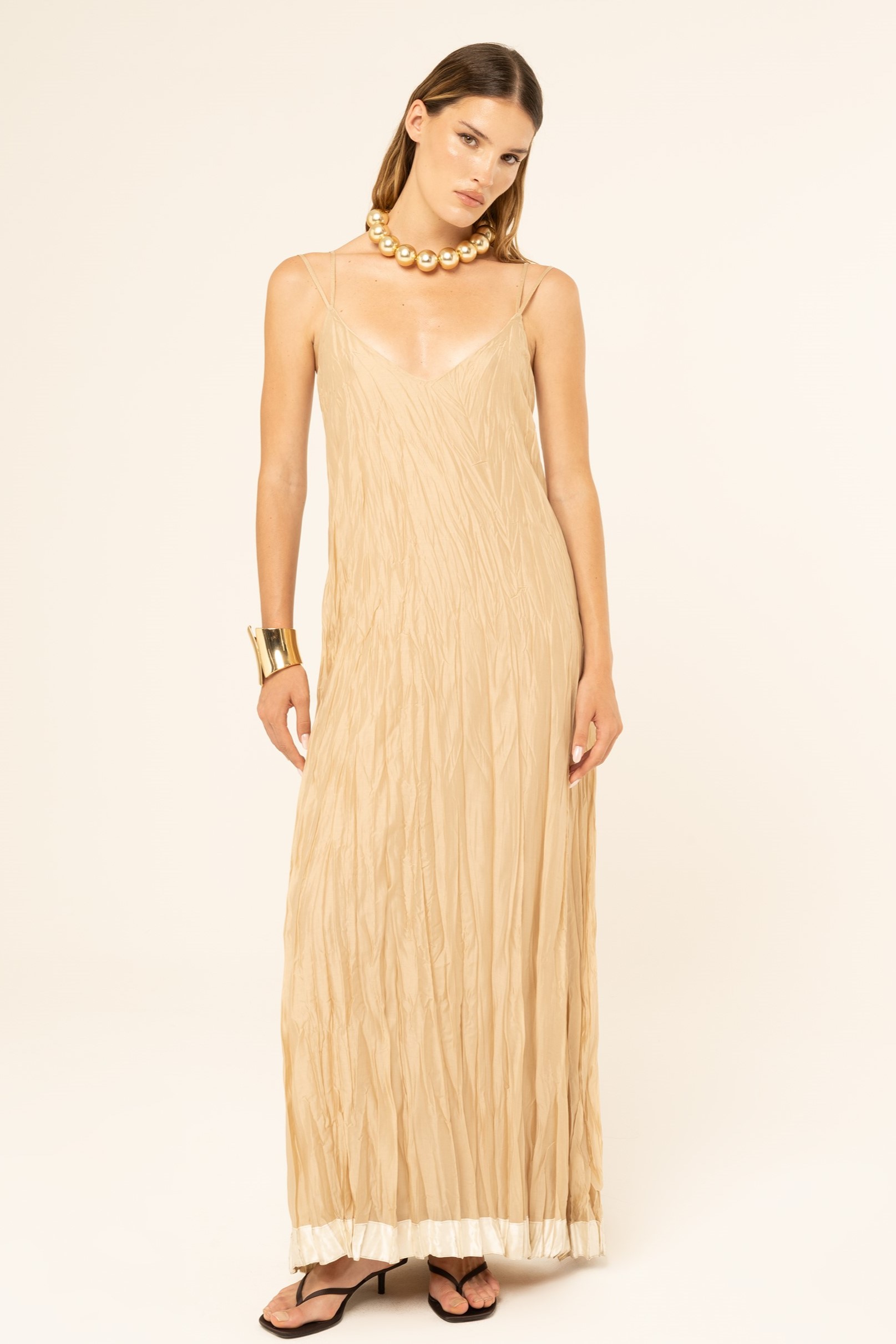 Γυναικείο μακρύ φόρεμα με τιράντες που χαρίζει αέρινο και θηλυκό χαρακτήρα στις εμφανίσεις. Ιδανικό για καλοκαιρινές, καθημερινές ή βραδινές εξόδους, συνδυάζεται εύκολα με αξεσουάρ, δημιουργώντας ένα κομψό και στιλάτο σύνολο.