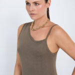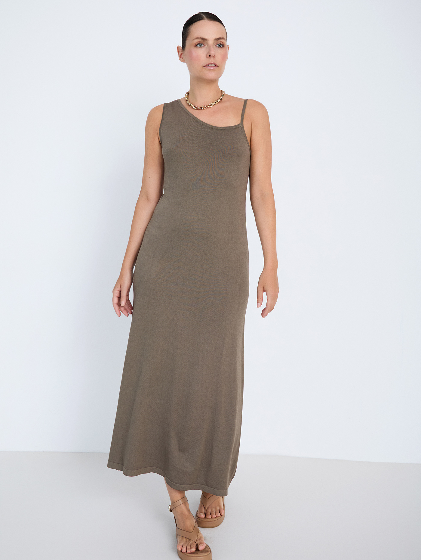 Γυναικείο μακρύ φόρεμα σε χακί απόχρωση που χαρίζει κομψό και διαχρονικό χαρακτήρα στις εμφανίσεις. Ιδανικό για casual, βραδινές ή πιο ιδιαίτερες εμφανίσεις, φοριέται άνετα μόνο του ή με διακριτικά αξεσουάρ, δημιουργώντας ένα ολοκληρωμένο και στιλάτο σύνολο.