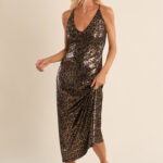 Γυναικείο μακρύ φόρεμα με λεοπάρ σχέδιο σε μαύρη απόχρωση και ανοιχτή πλάτη που χαρίζει δυναμικό και μοντέρνο χαρακτήρα στο ντύσιμο. Ιδανικό για βραδινές ή καλοκαιρινές εμφανίσεις, φοριέται άνετα μόνο του ή με διακριτικά αξεσουάρ, δημιουργώντας ένα εντυπωσιακό και καλαίσθητο σύνολο.
