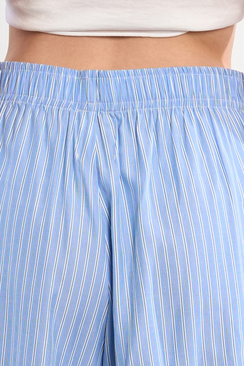 Γυναικείο μπλε ριγέ σορτς που προσδίδει δροσερό και μοντέρνο χαρακτήρα στο καλοκαιρινό ντύσιμο. Ιδανικό για καθημερινές ή casual εμφανίσεις, φοριέται άνετα με μπλούζες, τοπ ή πουκάμισα, δημιουργώντας ένα ολοκληρωμένο και στιλάτο σύνολο.