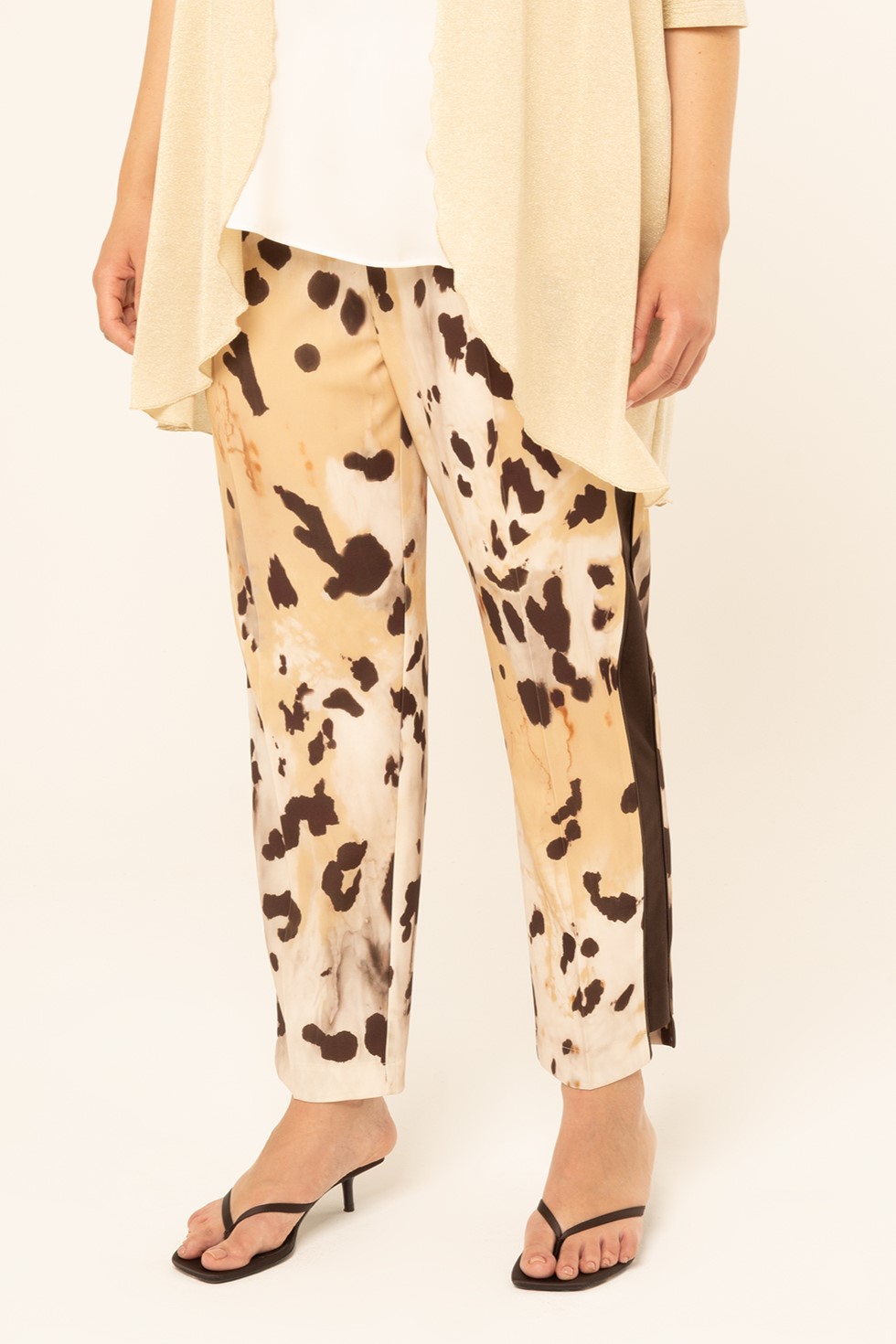 Γυναικείο παντελόνι με ιδιαίτερα σχέδια που χαρίζει κομψό και μοντέρνο χαρακτήρα στις εμφανίσεις. Ιδανικό για επαγγελματικές ή casual εμφανίσεις, συνδυάζεται εύκολα με μπλούζες, πουκάμισα ή σακάκια, δημιουργώντας ένα στιλάτο και ολοκληρωμένο σύνολο.