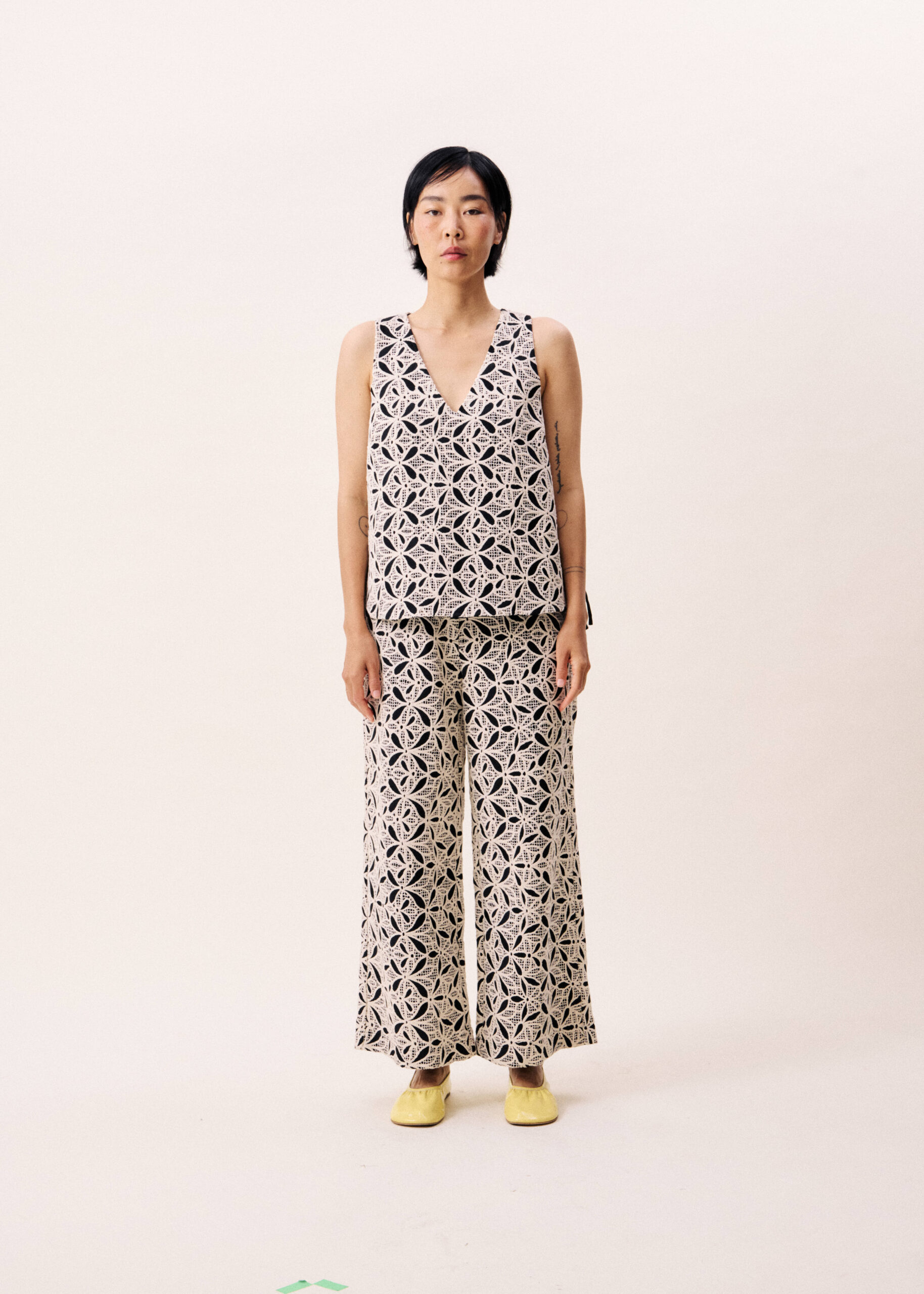 Γυναικείο παντελόνι με πουά σχέδιο που χαρίζει μοντέρνο και κομψό χαρακτήρα στο ντύσιμο. Ιδανικό για casual ή πιο επίσημες εμφανίσεις, φοριέται άνετα με μπλούζες, πουκάμισα ή τοπ, δημιουργώντας ένα ολοκληρωμένο και στιλάτο σύνολο.