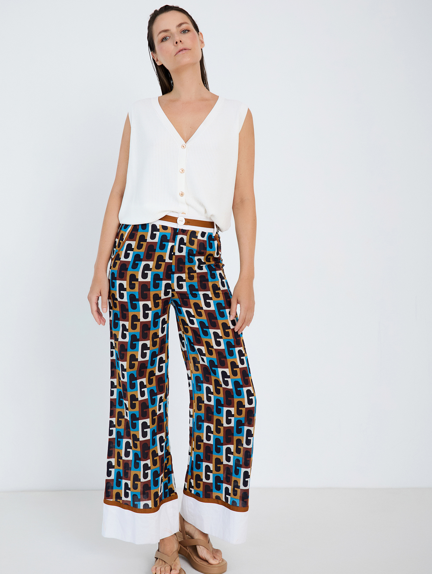 Γυναικείο πολύχρωμο παντελόνι που χαρίζει ζωντάνια και μοντέρνο χαρακτήρα στο ντύσιμο. Ιδανικό για καθημερινές ή καλοκαιρινές εμφανίσεις, συνδυάζεται εύκολα με μονόχρωμες μπλούζες ή τοπ, δημιουργώντας ένα ξεχωριστό και στιλάτο σύνολο.