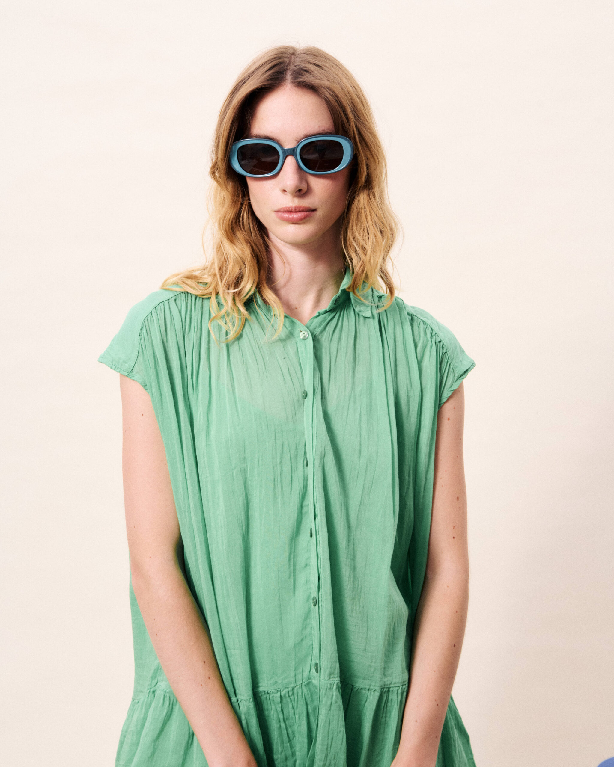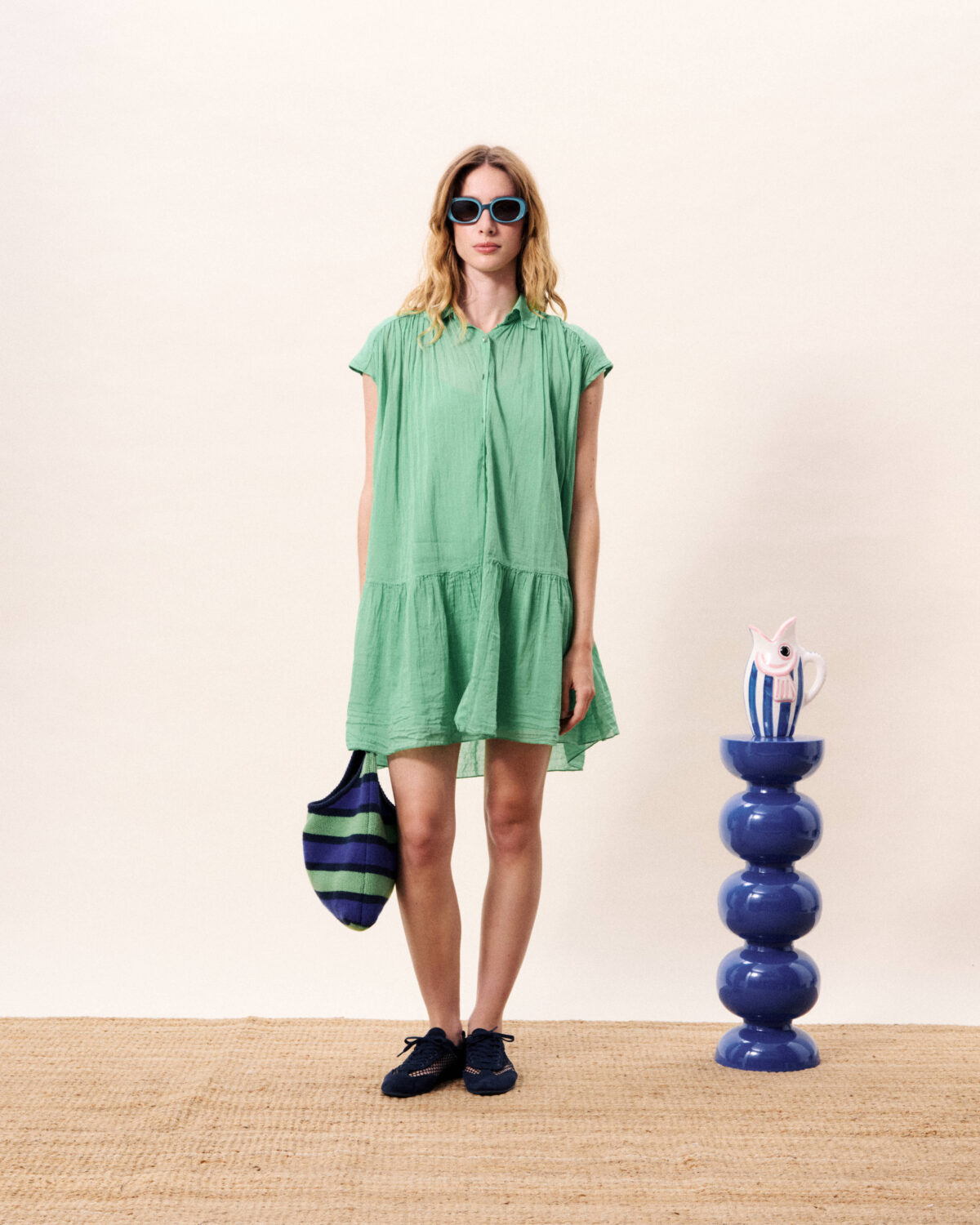 Γυναικείο πράσινο κοντό φόρεμα που χαρίζει φρέσκο και κομψό χαρακτήρα στις εμφανίσεις. Ιδανικό για καλοκαιρινές ή casual εμφανίσεις, φοριέται άνετα μόνο του ή με διακριτικά αξεσουάρ, δημιουργώντας ένα ολοκληρωμένο και στιλάτο σύνολο.