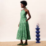 Γυναικείο Πράσινο Φόρεμα με Λουλούδια και Ανοιχτή Πλάτη – FRNCH- LUCY PARIS