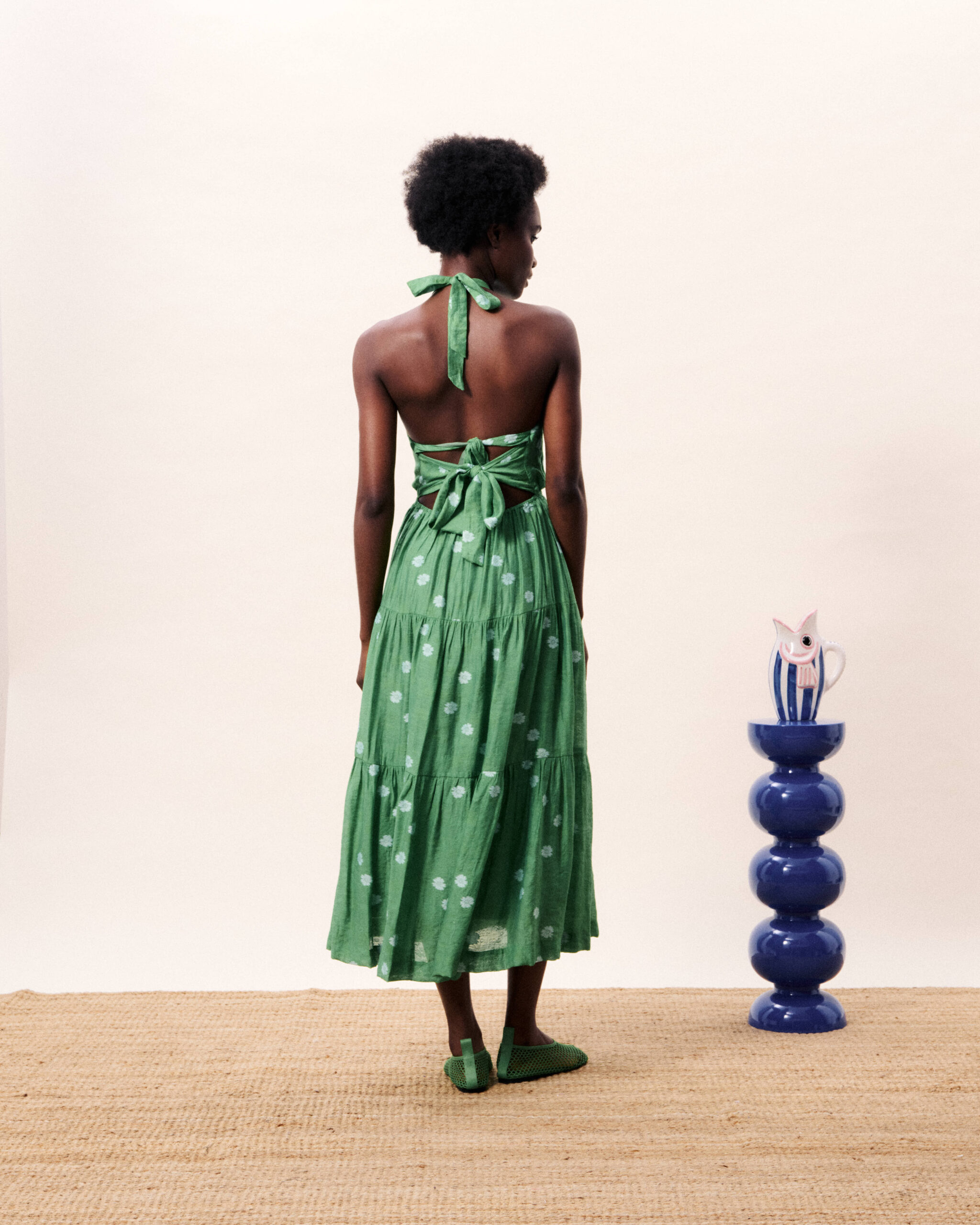 Γυναικείο πράσινο φόρεμα με λουλούδια και ανοιχτή πλάτη που χαρίζει ρομαντικό και μοντέρνο χαρακτήρα στις εμφανίσεις. Ιδανικό για καλοκαιρινές, βραδινές ή ιδιαίτερες εμφανίσεις, φοριέται άνετα μόνο του ή με διακριτικά αξεσουάρ, δημιουργώντας ένα ολοκληρωμένο και στιλάτο σύνολο.