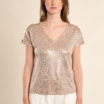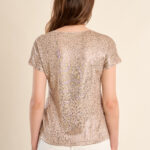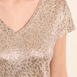 Αυτό το γυναικείο T-shirt ξεχωρίζει με το metallic λεοπάρ print, προσφέροντας ένα τολμηρό και fashion-forward στυλ. Η άνετη εφαρμογή και η θηλυκή γραμμή το καθιστούν ιδανικό για βραδινές εμφανίσεις, parties ή για να δώσεις glam πινελιά σε καθημερινά outfits, συνδυάζοντας άνεση με standout στυλ.