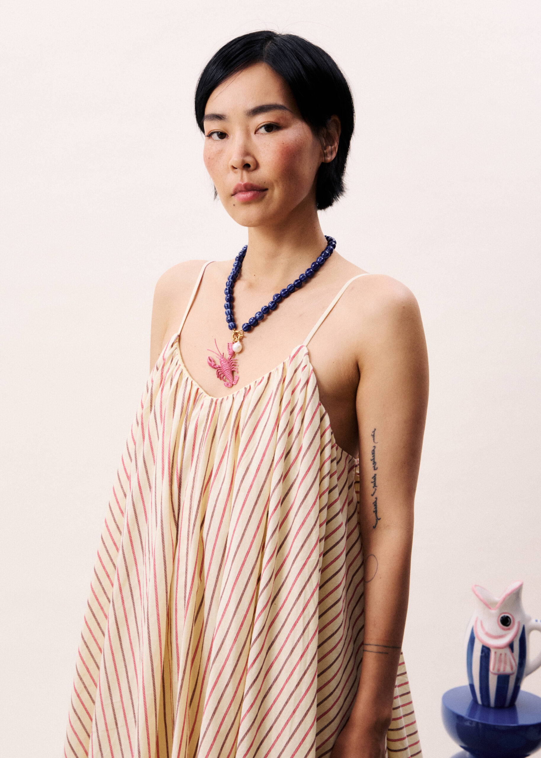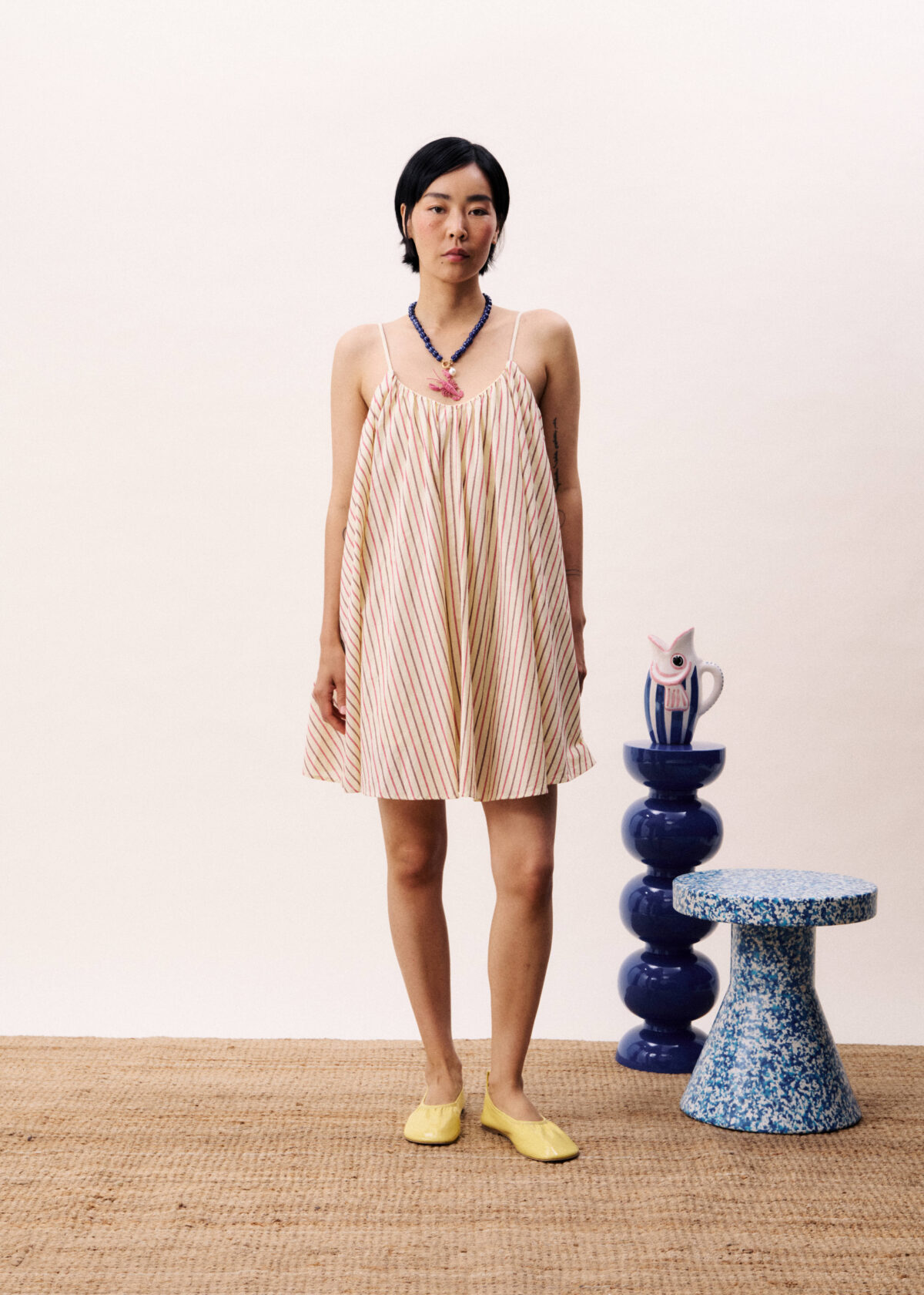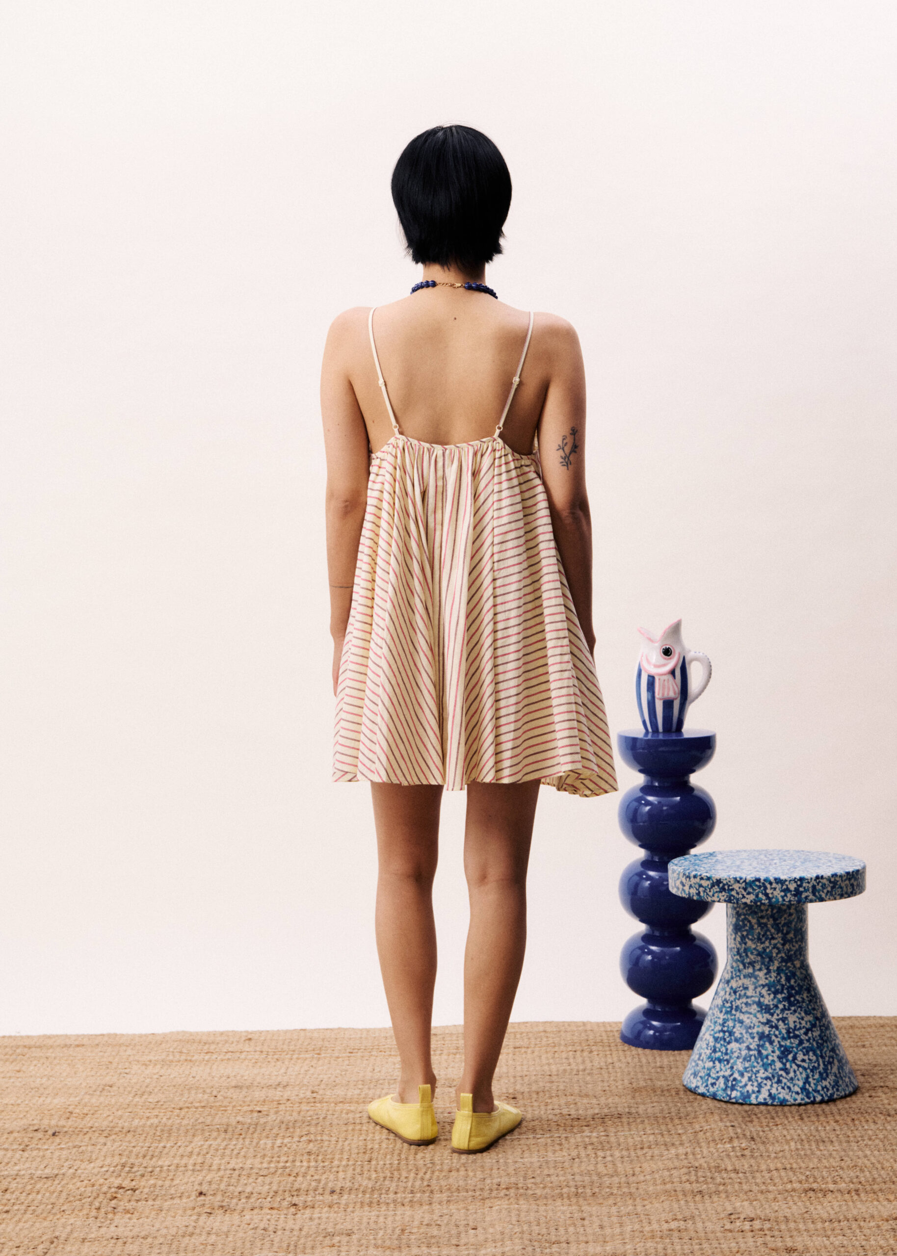 Γυναικείο ριγέ mini φόρεμα σε μπεζ απόχρωση με τιράντες που προσδίδει κομψό και διαχρονικό χαρακτήρα στο ντύσιμο. Ιδανικό για καθημερινές ή καλοκαιρινές εμφανίσεις, φοριέται άνετα μόνο του ή με αξεσουάρ, δημιουργώντας ένα ολοκληρωμένο και στιλάτο σύνολο.