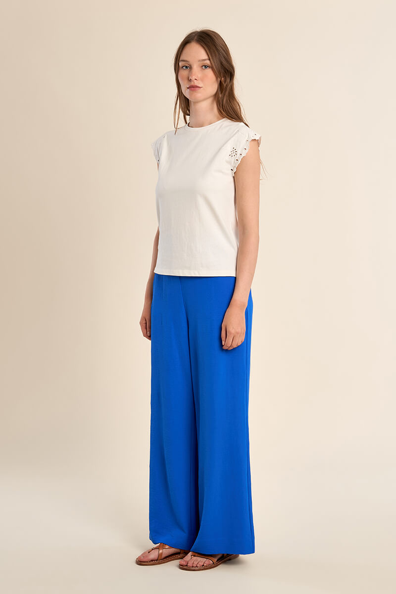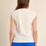 Γυναικείο T-shirt με ιδιαίτερα μανίκια που προσδίδουν μοντέρνο και προσεγμένο χαρακτήρα στο ντύσιμο. Ιδανικό για casual ή layering εμφανίσεις, φοριέται άνετα με τζιν, φούστες ή παντελόνια. Συνδυάζεται εύκολα με σακάκια ή ζακέτες για ένα ολοκληρωμένο και κομψό σύνολο.