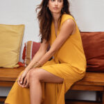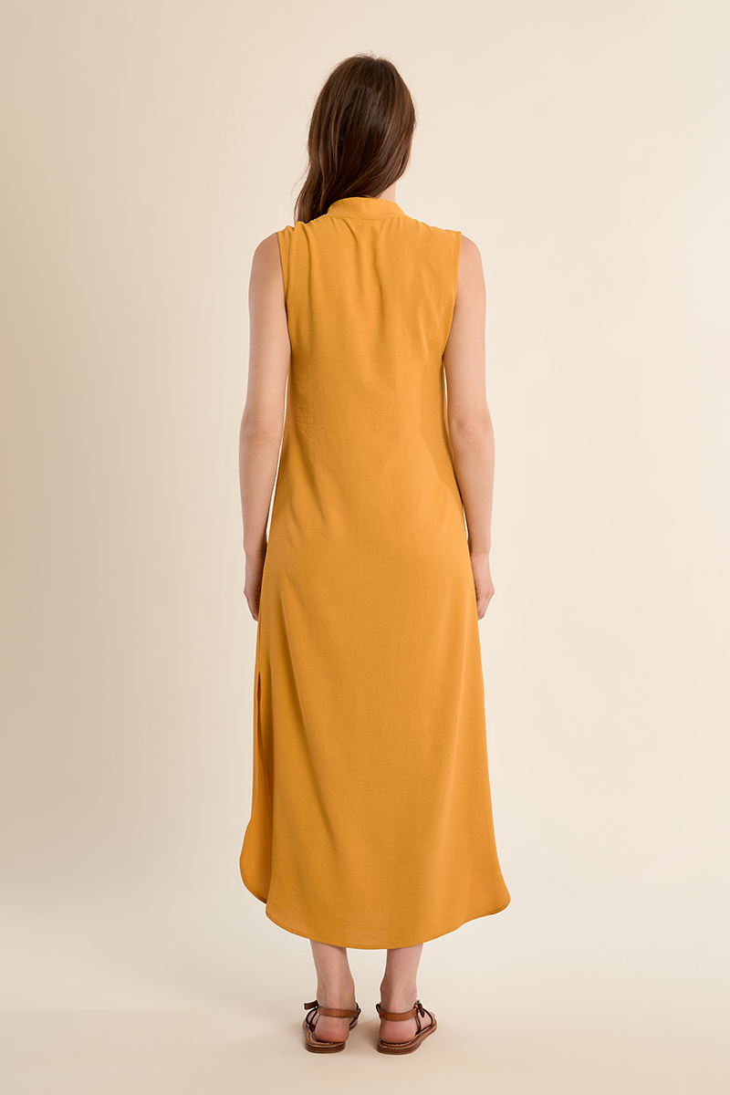 Γυναικείο φόρεμα με V σε έντονη κίτρινη απόχρωση που χαρίζει φρέσκο και μοντέρνο χαρακτήρα στις εμφανίσεις. Ιδανικό για casual ή πιο επίσημες εμφανίσεις, φοριέται άνετα μόνο του ή με αξεσουάρ, δημιουργώντας ένα ολοκληρωμένο και στιλάτο σύνολο.