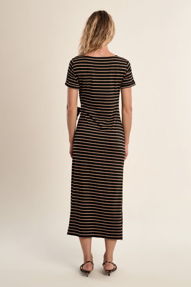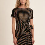 Το κοντομάνικο φόρεμα μαύρο με ρίγες συνδυάζει κομψότητα και άνεση, ιδανικό για casual και καθημερινές εμφανίσεις. Οι ρίγες προσθέτουν μοντέρνο χαρακτήρα, ενώ το ελαφρύ ύφασμα χαρίζει άνεση καθ’ όλη τη διάρκεια της ημέρας.