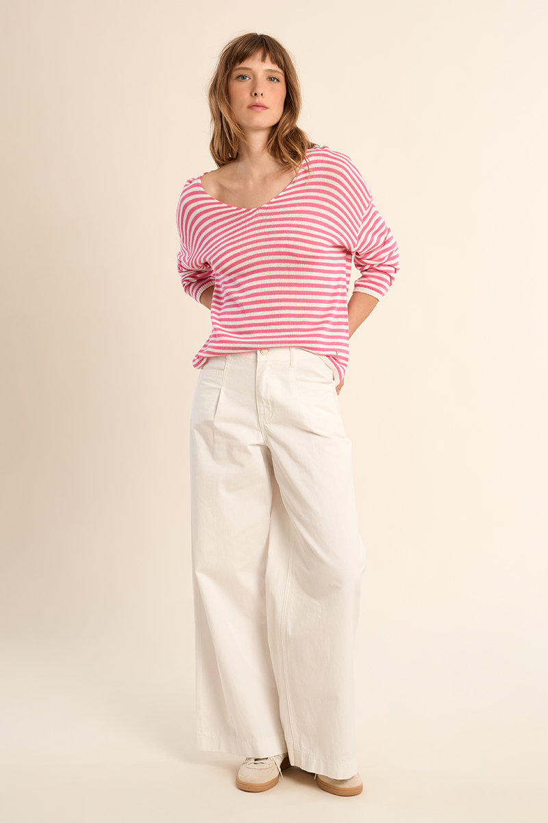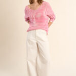 Γυναικεία ριγέ μακρυμάνικη μπλούζα σε συνδυασμό λευκού και ροζ που χαρίζει φρέσκο και κομψό χαρακτήρα στο καθημερινό ντύσιμο. Ιδανική για casual εμφανίσεις, φοριέται άνετα με τζιν, παντελόνια ή φούστες, δημιουργώντας ένα ολοκληρωμένο και στιλάτο σύνολο.
