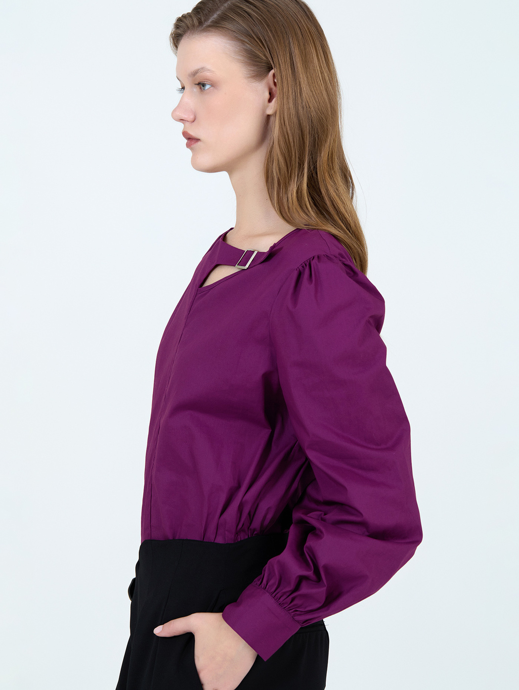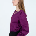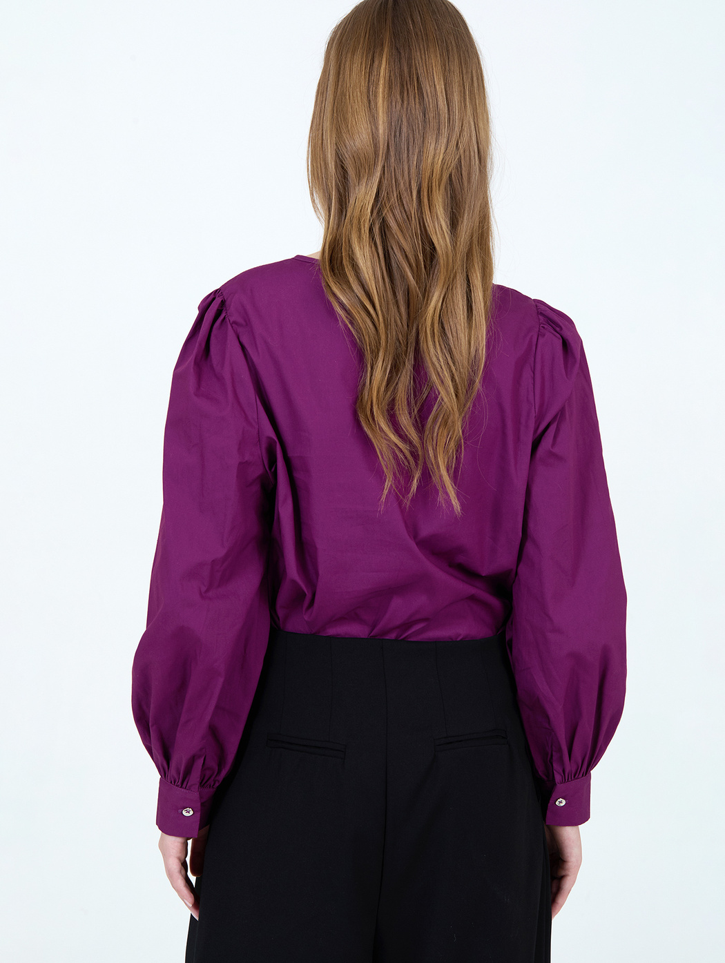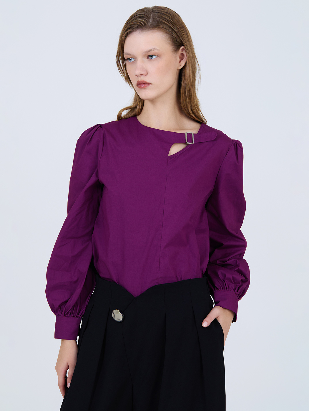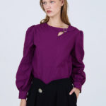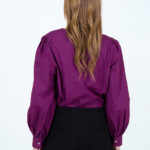 Μπλούζα με φουσκωτά μανίκια και διακοσμητικό ζωνάκι στο λαιμό