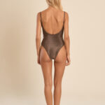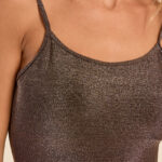 Γυναικείο ολόσωμο μαγιό σε μπρονζέ απόχρωση με διακριτικές λάμψεις που προσδίδουν κομψό και εντυπωσιακό χαρακτήρα στις καλοκαιρινές εμφανίσεις. Ιδανικό για παραλία ή πισίνα, εφαρμόζει άνετα στη σιλουέτα και δημιουργεί ένα ολοκληρωμένο, στιλάτο σύνολο.